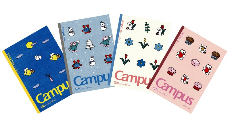 · Campus Illustrator Limited Edition Notebook (A5 · B5): ใช้กระดาษ Campus แบบออริจินอลที่พัฒนามาจากการวิจัยกว่า 50 ปี มอบสัมผัสการเขียนที่นุ่มนวล พร้อมปกดีไซน์พิเศษที่วาดโดยนักวาดชาวญี่ปุ่