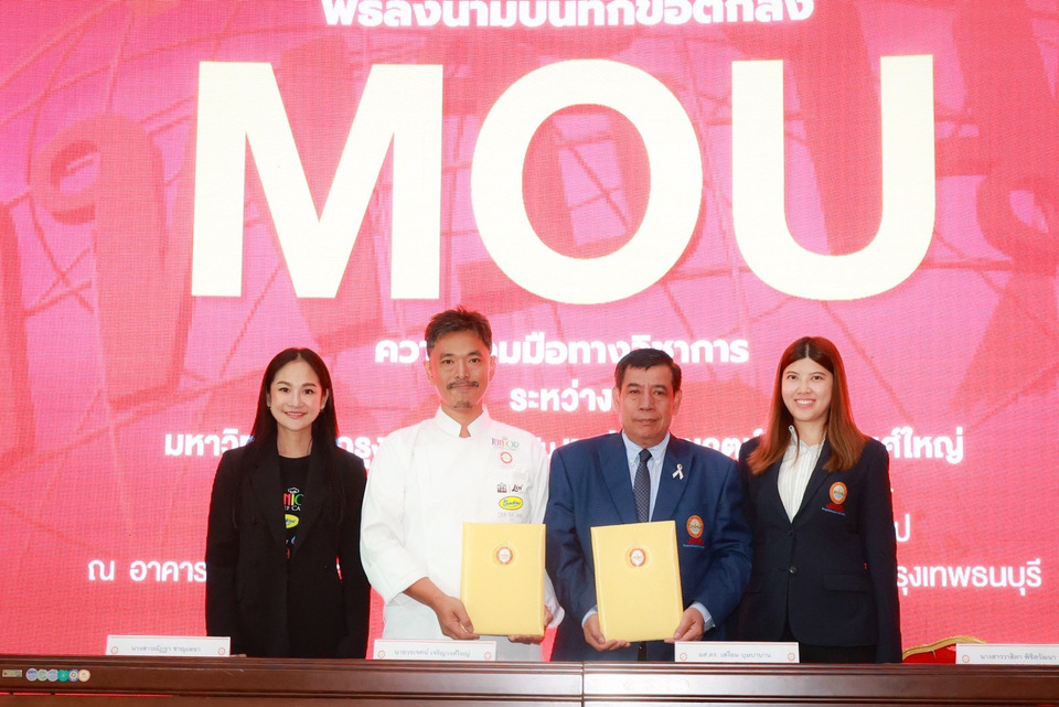 เมื่อวันที่ 21 เม.ย. ที่อาคารศูนย์ปฏิบัติการการโรงแรมและการท่องเที่ยว ชั้น 2 มหาวิทยาลัยกรุงเทพธนบุรี ศาสตราจารย์ (พิเศษ) ดร.ดวงฤทธิ์ เบ็ญจาธิกุล ชัยรุ่งเรือง ให้เกียรติเป็นประธานในพิธีลงนามในบันทึกข้อตกลงความร่วมมือระหว่างมหาวิทยาลัยกรุงเทพธนบุรี (มกธ.) กับ “เชฟตง” คุณวรเจตน์ เจริญวงศ์ใหม่ ประธานค่าย Junior Chef Camp ตามโครงการกิจกรรม “Junior Chef Camp” เพื่อเสริมสร้างองค์ความรู้ ส่งเสริมการศึกษา และการพัฒนาทักษะด้านการทำอาหารให้กับเยาวชนรุ่นใหม่ รวมทั้งกระตุ้นให้เยาวชนนักเรียน นักศึกษาหรือบุคคลที่สนใจเข้าร่วมในกิจกรรม “Junior Chef Camp” ด้วย