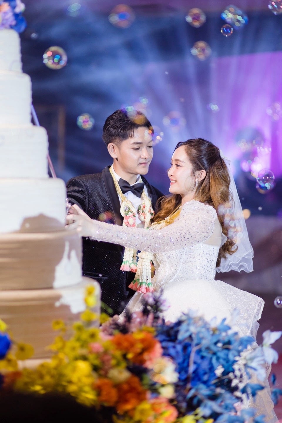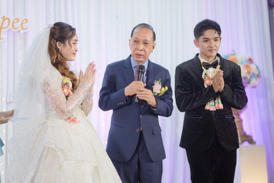 เจ้าบ่าวมาในชุดสูทดำ หล่อสุด ส่วนเจ้าสาว สวยสดงดงามตั้งแต่ศีรษะจรดปลายเท้า