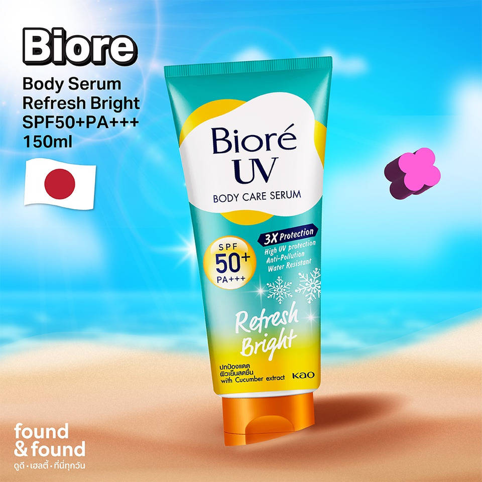 “Biore UV Anti-Pollution Body Care Serum Refresh Bright SPF50+/PA+++” ถึงแดดจะร้อนแค่ไหนแต่ก็ไม่ต้องกลัวแสบผิว ปกป้องด้วยโลชั่นผิวกายเนื้อเซรั่มสูตรเย็นที่เป็นได้มากกว่ากันแดดและกันฝุ่น ช่วยลดผิวแสบร้อนพร้อมให้สัมผัสเย็นสดชื่น และช่วยปรับสีผิวให้กระจ่างใสขึ้นอย่างเป็นธรรมชาติ