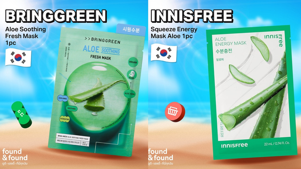 BRINGGREEN Aloe Soothing Fresh Mask แผ่นมาสก์หน้าที่อุดมไปด้วยสารสกัดจากว่านหาง จระเข้และใบมิ้นท์ป่า ช่วยเติมความชุ่มชื้นให้กับผิวที่ขาดน้ำ มอบความเย็นสดชื่นทันทีหลังใช้ และขอแนะนำอีกหนึ่งไอเทมน่าลอง Innisfree Squeeze Energy Mask Aloe แผ่นมาสก์วีแกนเข้มข้นพร้อมเอสเซนส์บำรุงสูตรอ่อนโยน ช่วยปลอบประโลมพร้อมมอบความผ่อนคลายและเติมความชุ่มชื้นให้ผิวหน้าที่อ่อนล้า