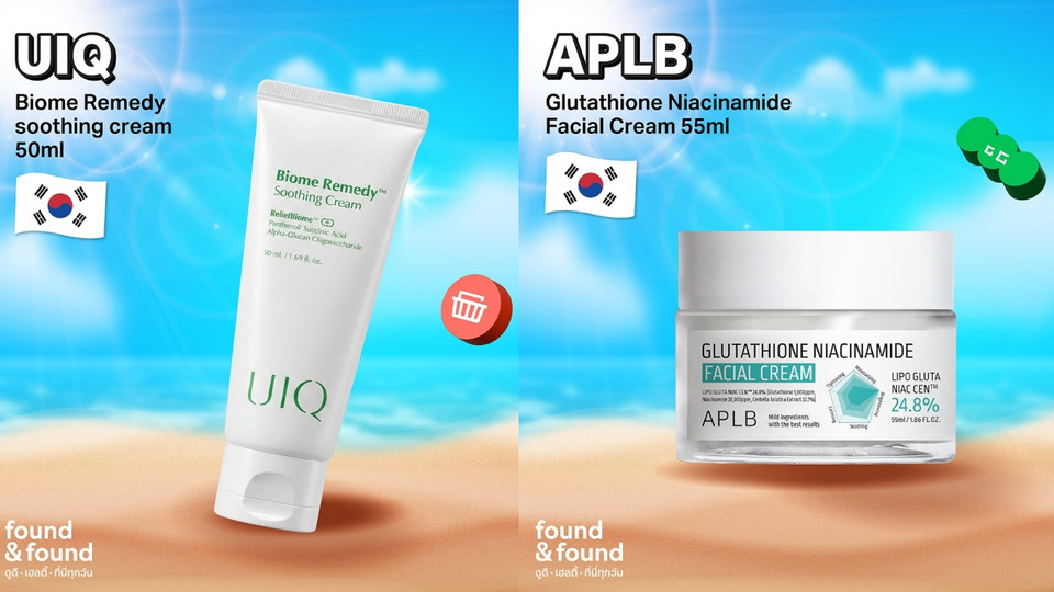 “UIQ Biome Re. soothing cream” ช่วยปลอบประโลมและเติมความชุ่มชื้นให้ผิวรู้สึกสบาย เหมาะสำหรับผิวแพ้ง่าย หรือผิวที่มีแนวโน้มระคายเคือง ช่วยดูแลผิวให้อ่อนนุ่มและสมดุลมากขึ้นและขอแนะนำอีกหนึ่งไอเทมควรมี “APLB GLUTATHIONE NIACINAMIDE FACIAL CREAM” ครีมบำรุงผิวที่ช่วยปรับสีผิวให้กระจ่างใส ลดเลือนฝ้ากระจุดด่างดำ ปลอบประโลมผิวและลดการระคายเคือง ช่วยเติมน้ำให้ผิวคงความชุ่มชื้นล้ำลึก ผิวแลดูฉ่ำน้ำและมีสุขภาพดี