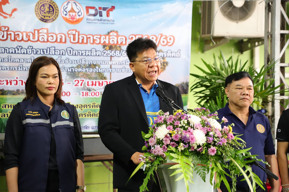 เมื่อวันที่ 26 เม.ย.69 ผู้สื่อข่าวรายงานว่า นายสรพงษ์ มานะสุขอนันต์ รองผู้ว่าราชการจังหวัดอุตรดิตถ์ เป็นประธานในพิธีเปิดโครงการ “ตลาดนัดข้าวเปลือก ปีการผลิต 2568/69” พร้อมลงพื้นที่ตรวจเยี่ยมการดำเนินงาน เพื่อให้กำลังใจเกษตรกรและติดตามสถานการณ์การซื้อขายอย่างใกล้ชิด