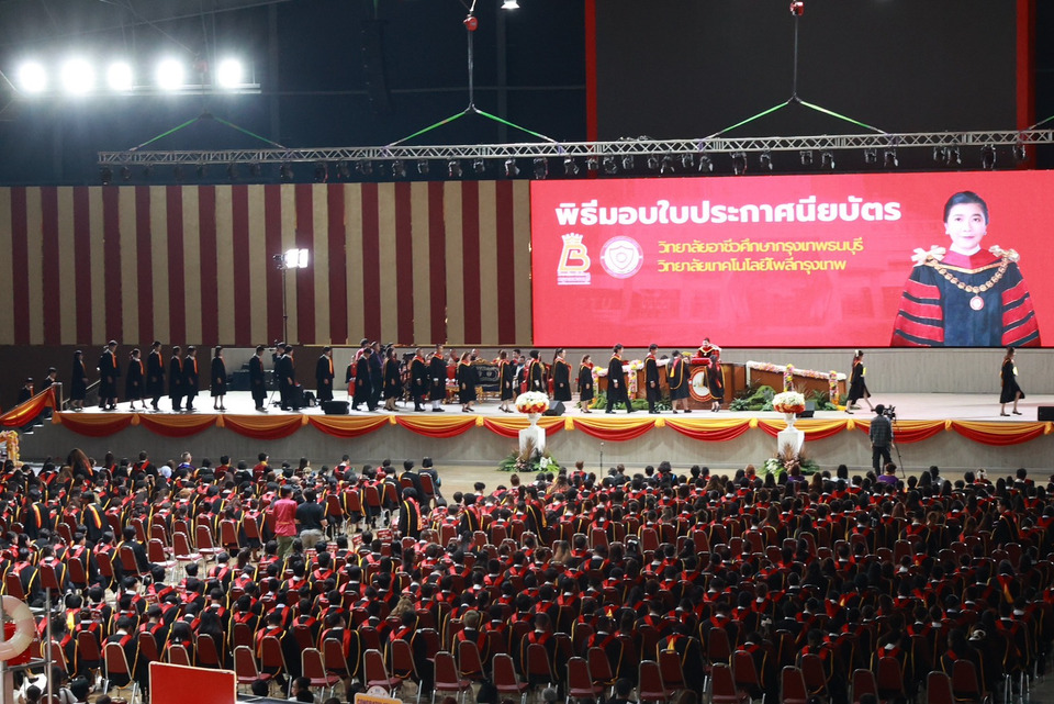 วันที่ 26 เมษายน 2569 ศาสตราจารย์ ดร.บังอร เบ็ญจาธิกุล อธิการบดี มหาวิทยาลัยกรุงเทพธนบุรี (มกธ.) เป็นประธานในพิธีมอบประกาศนียบัตรแก่ผู้สำเร็จการศึกษาระดับประกาศนียบัตรวิชาชีพ (ปวช.) ประกาศนียบัตรวิชาชีพชั้นสูง (ปวส.) จากสถาบันการศึกษาในเครือของมหาวิทยาลัยกรุงเทพธนบุรี ได้แก่ วิทยาลัยอาชีวศึกษากรุงเทพธนบุรี และวิทยาลัยเทคโนโลยีโพลีกรุงเทพ ประจำปีการศึกษา 2568 พร้อมกล่าวให้โอวาทและแสดงความยินดีกับผู้สำเร็จการศึกษาในโอกาสนี้ด้วย