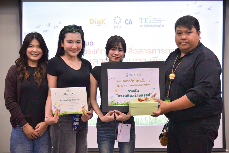 คณะนิเทศศาสตร์ มหาวิทยาลัยธุรกิจบัณฑิตย์ (DPU) ร่วมกับ สถาบันสิ่งแวดล้อมไทย (TEI) จัดกิจกรรมนำเสนอแผนรณรงค์ทางการสื่อสารการตลาดในหัวข้อ “ความหลากหลายทางชีวภาพ” ณ ห้องประชุม 211 อาคาร 2 มหาวิทยาลัยธุรกิจบัณฑิตย์ เมื่อวันที่ 27 เมษายน 2569 เพื่อส่งเสริมความตระหนักรู้และการมีส่วนร่วมในการอนุรักษ์ทรัพยากรธรรมชาติ ผ่านมุมมองและแนวคิดสร้างสรรค์ของคนรุ่นใหม่