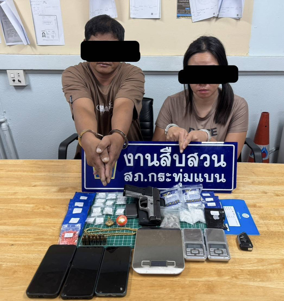 เมื่อวันที่ 23 พฤศจิกายน พ.ศ.2568 พ.ต.ท. ศักดิ์สิทธิ์ ชูบุญเรือง รองผกก.สืบสวน สภ.กระทุ่มแบน จังหวัดสมุทรสาคร ได้แจ้งกับผู้สื่อข่าวว่าได้จับกุมนักค้ายารายสำคัญ2คนชายหนึ่งหญิงหนึ่งพร้อมของกลางยาเสพติดและอาวุธปืน