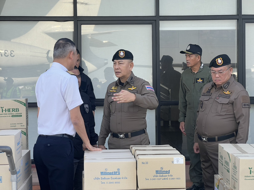 อุปกรณ์บรรเทาทุกข์ที่จัดส่งประกอบด้วยเครื่องอุปโภค–บริโภคอุปกรณ์ส่องสว่างยารักษาโรค และชุดปฐมพยาบาลอุปกรณ์ยังชีพสำหรับผู้ที่ต้องอพยพชั่วคราว โดย ผบ.ตร.ได้สั่งการล่วงหน้าไปก่อนหน้านี่เร่งเข้าช่วยเหลือผู้สูงอายุ เด็กเล็ก และผู้ป่วยติดเตียง รวมถึงรับฟังปัญหาของชาวบ้านโดยตรพ้อมจัดเตรียมพร้อม ฮ.ส่วนกลาง อีก 1 ลำ หากสถานการณ์ขยายตัว