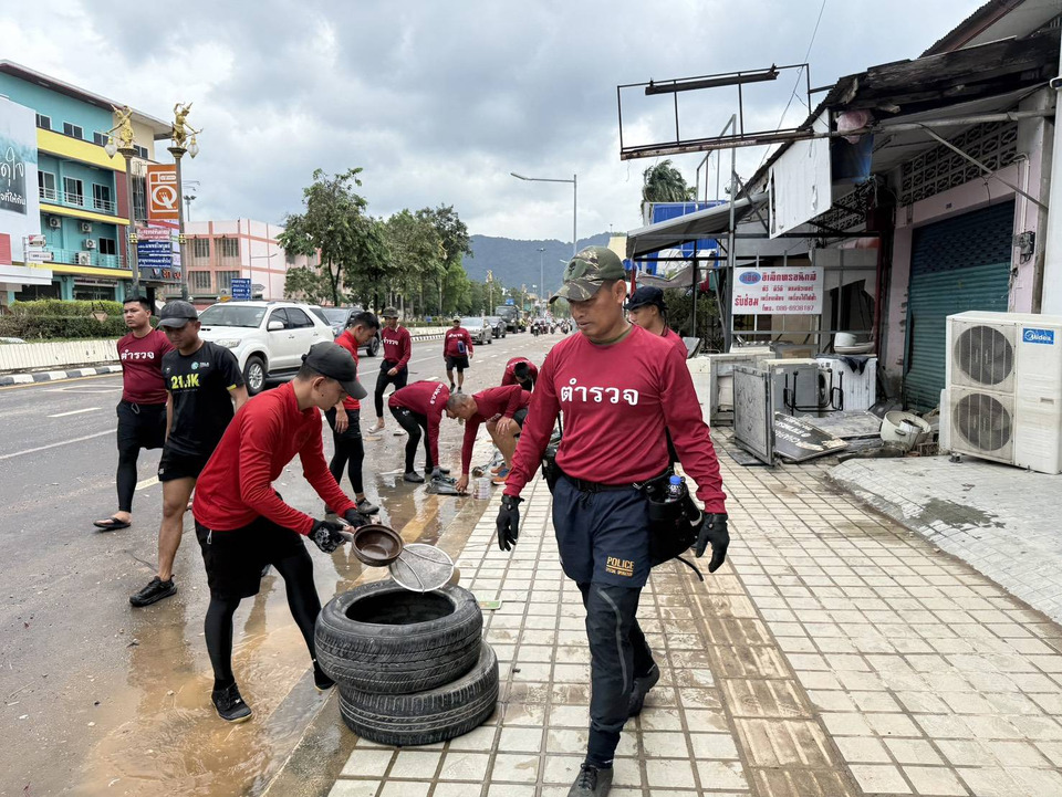 ทั้งนี้ ขณะนี้ในหลายพื้นที่ของ อ.หาดใหญ่ ระดับน้ำเริ่มลดลงแล้ว แต่ยังมีหลายจุดที่ประชาชนยังขาดแคลนอาหารและน้ำดื่ม ผู้บัญชาการตำรวจภูธรภาค 9 ได้กำชับให้ทุกหน่วยงานเร่งจัดส่งถุงยังชีพ อาหาร และน้ำดื่ม เข้าไปถึงในจุดที่ขาดแคลนให้เร็วที่สุดเท่าที่จะทำได้ เพื่อบรรเทาความเดือดร้อนเบื้องต้นของประชาชน โดยมีโรงครัวชั่วคราวของตำรวจจัดทำข้าวกล่องวันละมากกว่า 1,500 กล่อง ส่งเข้าพื้นที่แต่ยังไม่เพียงพอ อย่างไรก็ตาม หลายภาคส่วนช่วยกันจัดทำและส่งให้ผู้ประสบภัย ขณะเดียวกันถนนบางสายในหาดใหญ่ใช้การได้แล้วหลังน้ำลด แต่มีรถจอดคา และเศษสิ่งของกีดขวาง ถนนชำรุด วันนี้ตำรวจภูธรภาค 9 ระดมตำรวจลงพื้นที่จัดการรถและของที่กีดขวาง เพื่อเปิดการจราจรถนนเพชรเกษม