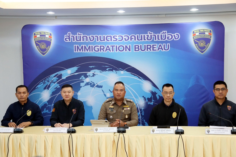วันที่ 2 ธ.ค.68 ที่ สตม.ภายใต้อำนวยการของ พล.ต.ท.ภาณุมาศ บุญญลักษม์ ผบช.สตม., พล.ต.ต.พันธนะ นุชนารถ รอง ผบช.สตม., พล.ต.ต.ภานพ วรธนัชชากุล ผบก.สส.สตม., พ.ต.อ.รัฐโชติ โชติคุณ รอง ผบก.สส.สตม., พ.ต.อ.แดนไพร แก้วเวหล รอง ผบก.สส.สตม., พ.ต.อ.สุรศักดิ์ สุรินทร์แก้ว รอง ผบก.สส.สตม., พ.ต.อ.เฉลิมชนม์ แหลมทอง รอง ผบก.สส.สตม., พ.ต.อ.ธวัชชัย นรินรัตน์ ผกก.1 บก.สส.สตม., พ.ต.ท.ดุสิต ภูหงษ์เพชร รอง ผกก.1 บก.สส.สตม. แถลงข่าวจับกุมจีนเทาหลอกสถาบันการเงิน สูญเงิน 2,800 ล้านบาท หนีกบดานไทย