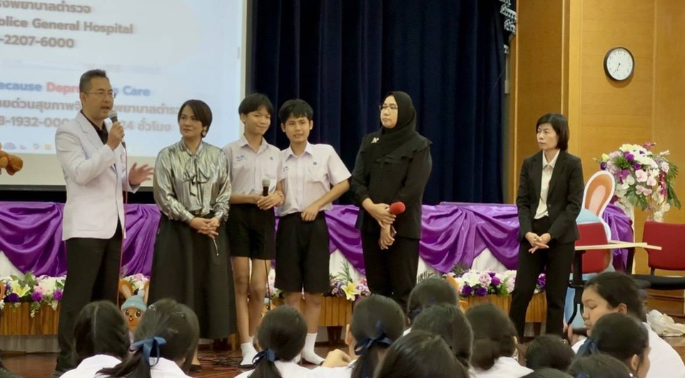 นอกจากนี้ยังมีการบรรยายในหัวข้อ “เด็กไทยรู้เท่าทันความรุนแรง แนวทางการเข้าถึง ความช่วยเหลือ จากทีมตำรวจริบบิ้นขาว โรงพยาบาลตำรวจ” รวมไปถึงแนวทางการให้บริการของ ศูนย์พึ่งได้ โรงพยาบาลตำรวจ ช่องทางการเข้าถึงการให้คำปรึกษาหากประสบความรุนแรงทุกรูปแบบ หรือพบเห็นผู้ที่ถูกกระทำความรุนแรง และมีการแชร์ประสบการณ์การถูกกระทำความรุนแรงในรูปแบบ การถูกบูลลี่ จากเด็กๆ และให้ข้อแนะนำหากประสบภาวะการถูกบูลลี่ ซึ่งนำทีมโดย พล.ต.ต.หญิง ศิริกุล ศรีสง่า พยาบาล (สบ 6) โรงพยาบาลตำรวจ/โฆษกโรงพยาบาลตำรวจ