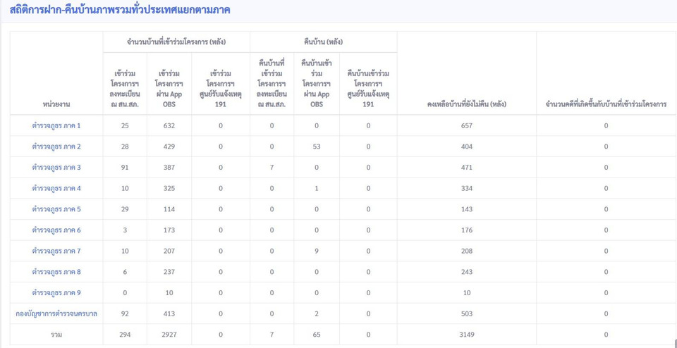 ในปีนี้สำนักงานตำรวจแห่งชาติเปิดให้ประชาชนฝากบ้านช่วงเทศกาลปีใหม่ ระหว่างวันที่ 22 ธันวาคม 2568 ถึงวันที่ 5 มกราคม 2569 พบว่าตั้งแต่วันที่ 22 – 27 ธันวาคม 2568 มีประชาชนฝากบ้านทั้งสิ้น 3,221 หลัง โดยใช้วิธีลงทะเบียนผ่าน แอปพลิเคชัน “ฝากบ้าน (Vacation House Watch)” จำนวน 2,927 หลัง และลงทะเบียนที่สถานีตำรวจ จำนวน 294 หลัง ในจำนวนนี้รับคืนบ้านแล้ว 72 หลัง คงเหลือในความดูแลตามโครงการ จำนวน 3,149 หลัง โดย ผบ.ตร.กำชับให้ตำรวจทุกพื้นที่เพิ่มความเข้มงวดในการตรวจตราอย่างใกล้ชิด