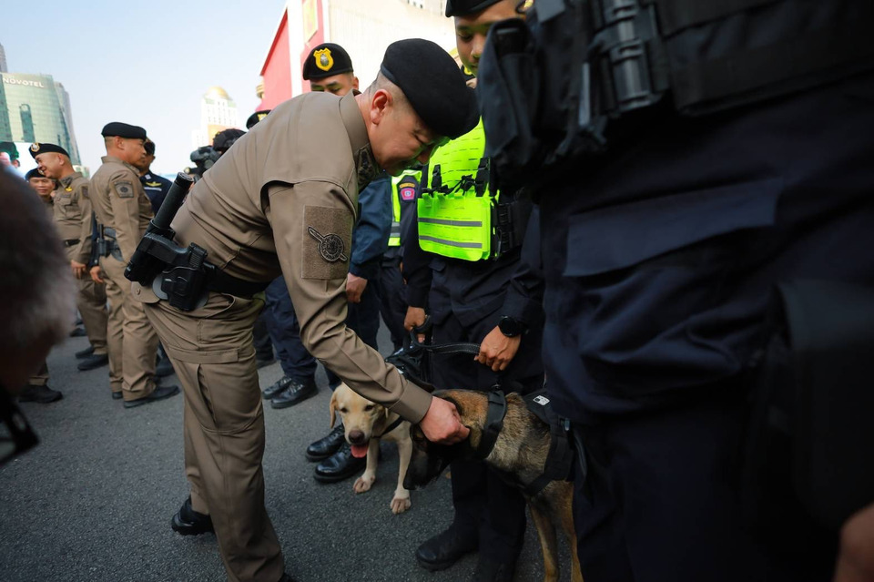 พร้อมด้วย พล.ต.ท.สมประสงค์ เย็นท้วม ผู้ช่วย ผบ.ตร., พล.ต.ท.สยาม บุญสม ผู้บัญชาการตำรวจนครบาล (ผบช.น.), พล.ต.ต.ชรินทร์ โกพัฒน์ตา รอง ผบช.น., พล.ต.ต.พงษ์สยาม มีขันทอง รองผู้บัญชาการตำรวจท่องเที่ยว โดยมีข้าราชการตำรวจ จากกองบัญชาการตำรวจนครบาล, กองบัญชาการตำรวจท่องเที่ยว, มณฑลทหารบกที่ 11 สำนักงานป้องกันและบรรเทาสาธารณภัย สำนักเทศกิจ สำนักงานเขตปทุมวัน หน่วยแพทย์และอาสาสมัครภาคประชาชน และหน่วยร่วมปฏิบัติ ร่วมพิธี จำนวน 2,450 นาย