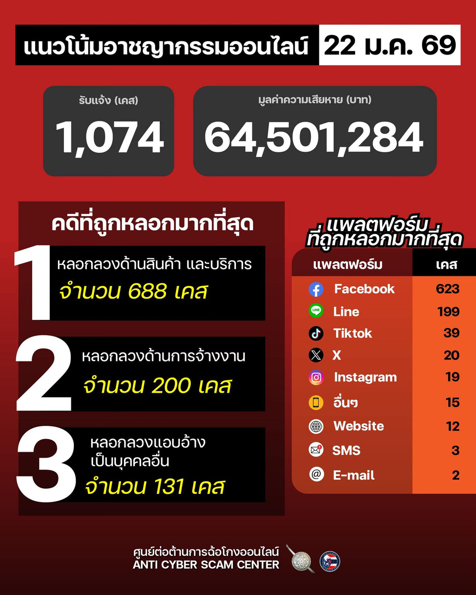 แนวโน้มอาชญากรรมออนไลน์ วันที่ 22 ม.ค. 69