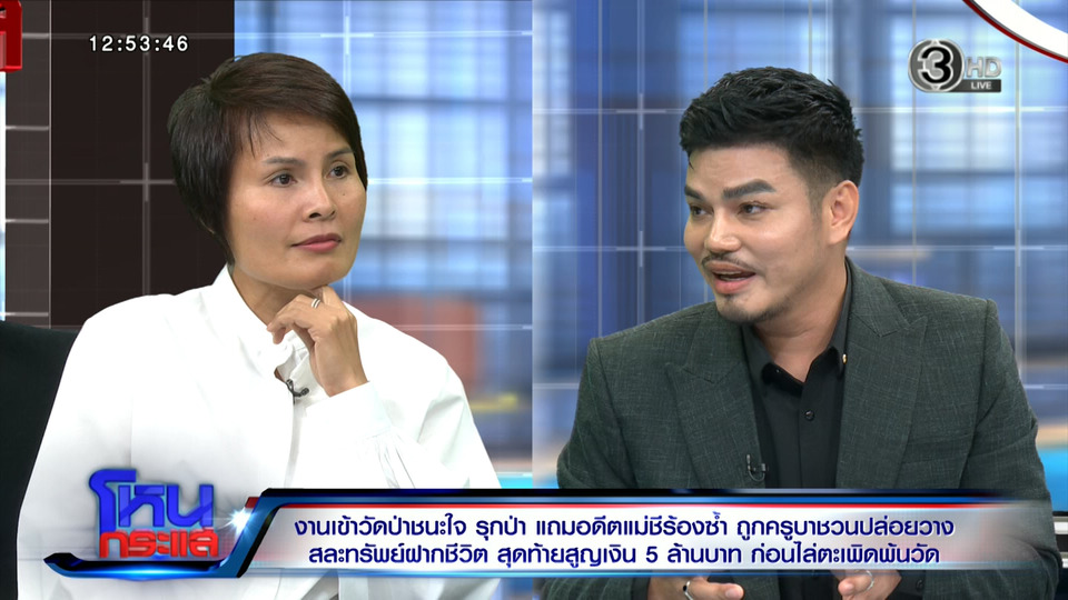 รายการโหนกระแส วันที่ 20 ก.พ.69 ดำเนินรายการโดย “หนุ่ม กรรชัย กำเนิดพลอย” ผลิตในนามบริษัท ดีคืนดีวัน จำกัด ออกอากาศทุกวันจันทร์-ศุกร์ เวลา 12.35 น. ทางช่อง 3 กดหมาย เลข 33 สัมภาษณ์ พุทธ อดีตแม่ชี สูญเงิน 5 ล้าน, ทนายตุ๋ย พรศักดิ์ วิภาสอาภานนท์ , โอ๊ต ลูกศิษย์ครูบา , ริชชี่ ลูกศิษย์สายปฏิบัติ