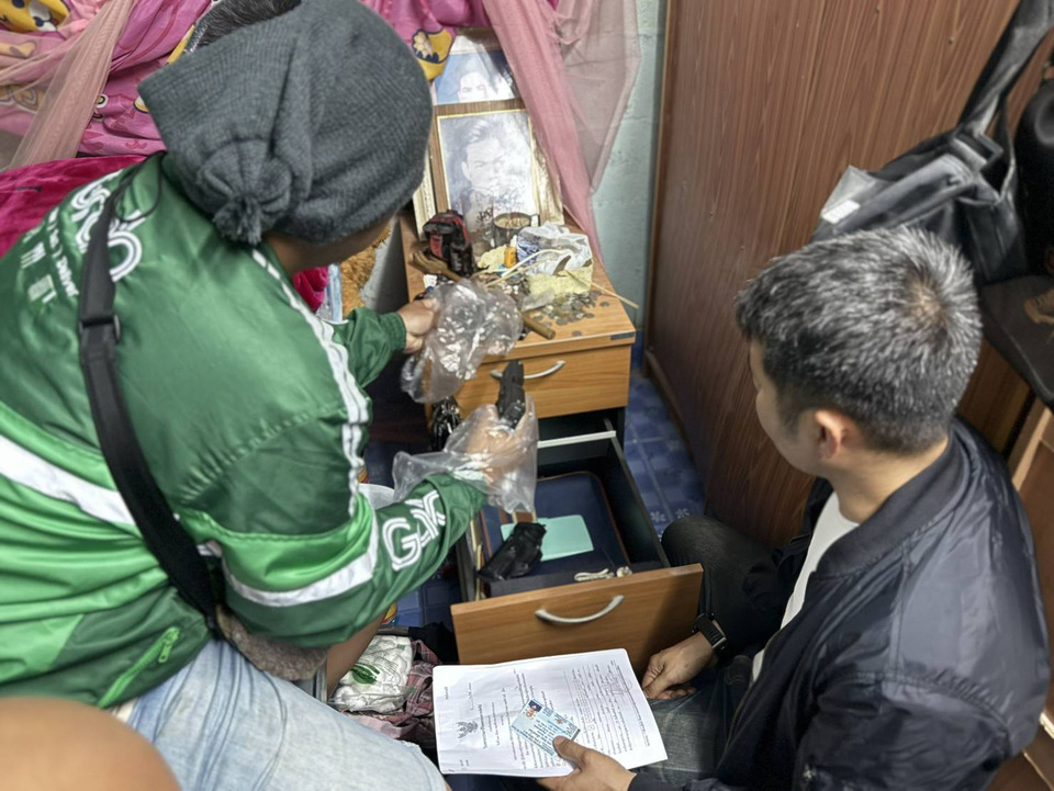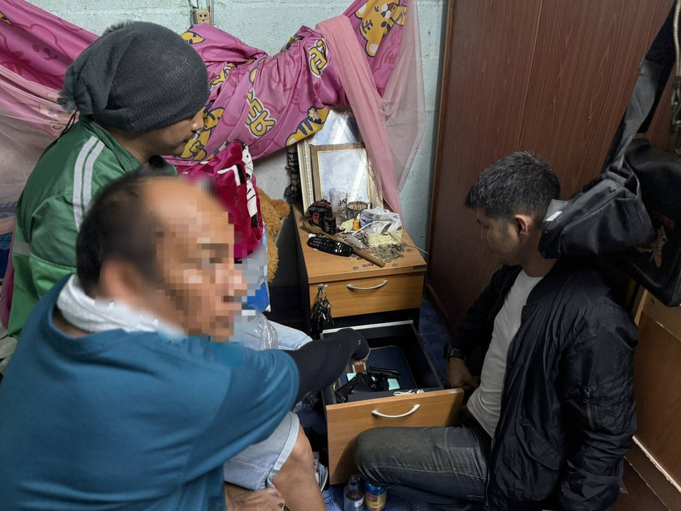 เจ้าหน้าที่พบของกลางซุกซ่อนอยู่ในเกะหัวนอนด้านซ้าย ประกอบด้วย ปืนกึ่งอัตโนมัติ ขนาด 9 มม. จำนวน 1 กระบอก,ซองกระสุนปืน จำนวน 2 ซอง,เครื่องกระสุนปืนขนาด 9 มม. จำนวน 6 นัด,ซองพกปืน จำนวน 1 อัน