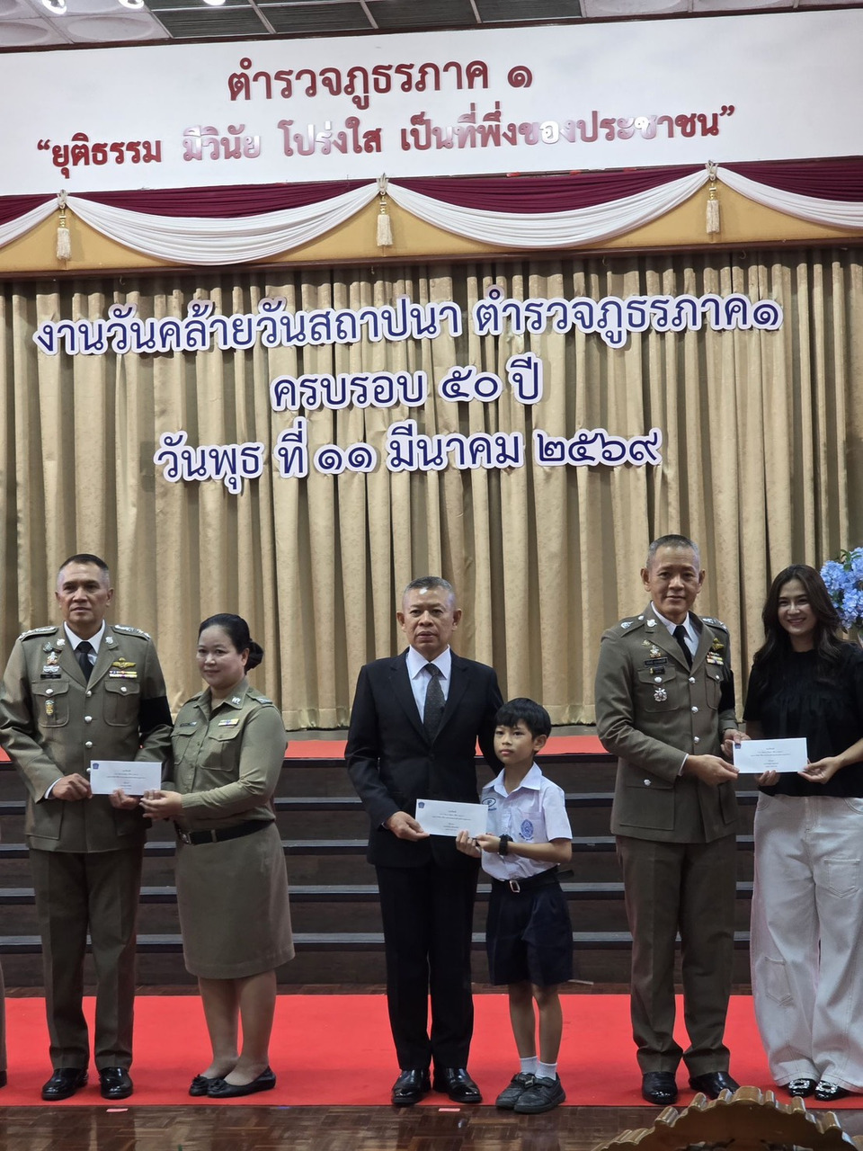วันที่ 11 มี.ค.69 ที่ตำรวจภูธรภาค 1 ถนนวิภาวดีรังสิต แขวงลาดยาว เขตจตุจักร กรุงเทพมหานครพล.ต.อ.ธนายุตม์ วุฒิจรัสธำรงค์อดีต ที่ปรึกษาพิเศษ สำนักงานตำรวจแห่งชาติ ร่วมแสดงความยินดีวันคล้ายวันสถาปนาตำรวจภูธรภาค 1 ประจำปี 2569 (ครบรอบปีที่ 50)และร่วมเป็นเกียรติในพิธีวางพวงมาลา และสดุดีตำรวจกล้าภาค 1 ที่ผู้เสียชีวิตจากการปฏิบัติหน้าที่ , พิธีสงฆ์ และพิธีมอบทุนการศึกษา โดยมี พล.ต.อ.กรไชย คล้ายคลึง รอง ผบ.ตร. เป็นประธาน