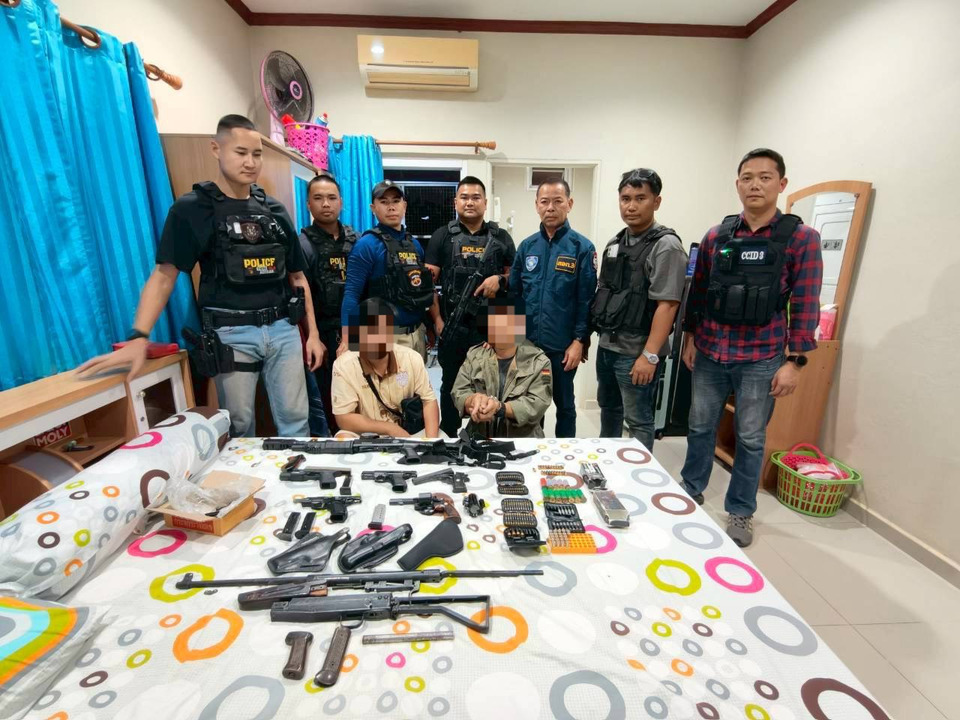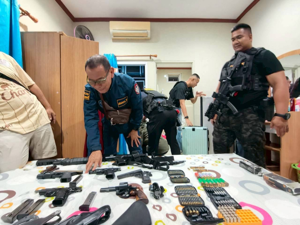 ผลการตรวจค้น พบอาวุธปืนเพิ่มเติมอีกหลายรายการ ได้แก่ อาวุธปืนลูกซอง จำนวน 1 กระบอก, อาวุธปืนสั้นกึ่งอัตโนมัติ ขนาด 9 มม. จำนวน 2 กระบอก, อาวุธปืนสั้น ขนาด .38 จำนวน 1 กระบอก, อาวุธปืนสั้นดัดแปลงไม่ทราบขนาด จำนวน 1 กระบอก, อาวุธปืนลูกซองสั้นแบบหักลำ ขนาด 12 เกท จำนวน 1 กระบอก, อาวุธปืนยาว ไม่ทราบขนาด จำนวน 1 กระบอก และกระสุนปืนขนาดต่างๆ รวมกว่า 150 นัด จึงดำเนินคดีผู้ต้องหาทั้งหมด ในข้อหา “ร่วมกันพยายามจำหน่ายอาวุธปืนและเครื่องกระสุนปืนโดยมิได้รับอนุญาต”, “ร่วมกันมีอาวุธปืนและเครื่องกระสุนปืนไว้ในครอบครองโดยไม่ได้รับอนุญาต” และ “ร่วมกันพาอาวุธปืนไปในเมือง หมู่บ้าน ทางสาธารณะโดยไม่ได้รับอนุญาตและไม่มีเหตุอันควร” พร้อมทั้งแจ้งสิทธิตามกฎหมาย ควบคุมตัวพร้อมของกลางส่งพนักงานสอบสวนดำเนินคดีตามกฎหมาย พร้อมทั้งเร่งขยายผลไปยังแหล่งที่มาของอาวุธปืนดังกล่าว รวมทั้งผู้ที่อาจมีส่วนเกี่ยวข้อง เพื่อนำตัวมาดำเนินการตามกฎหมายต่อไป