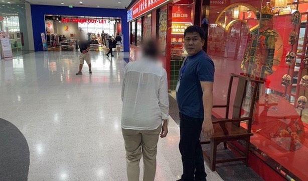 จากนั้นเจ้าหน้าที่ตำรวจ พบ น.ส.ศิริกันญา อายุ 40 ปี กำลังนั่งอยู่ภายในร้านกาแฟซึ่งได้รับโอนเงินและกำลังจะโอนเงินต่อไปยังอีกบัญชี จึงได้แสดงตัวเข้าตรวจสอบ พบว่ามียอดเงินถูกโอนเข้ามายังบัญชีธนาคารของ น.ส.ศิริกันญา จำนวน 1,000,000 บาท ซึ่งเป็นยอดเงินที่มาจากการฝากเงินผ่านเคาเตอร์ธนาคารโดยผู้เสียหาย เจ้าหน้าที่ตำรวจจึงได้ควบคุมตัวพร้อมทั้งประสานธนาคารอายัดยอดเงินจำนวนดังกล่าว และได้ตรวจยึดของกลางเป็น โทรศัพท์มือถือ จำนวน 1 เครื่อง และสมุดบัญชีธนาคารต่าง จำนวน 6 เล่ม