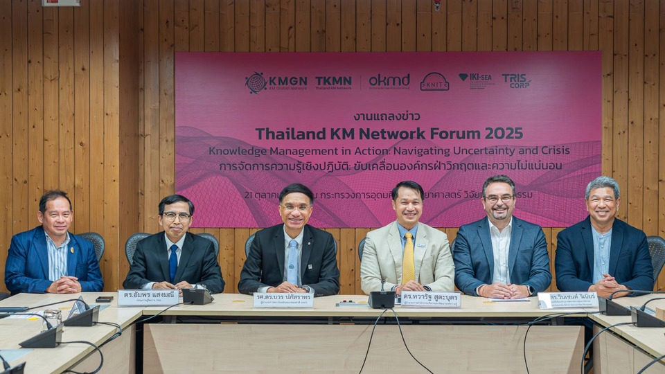 เครือข่ายจัดการความรู้ประเทศไทย (The Thailand Knowledge Management Network : TKMN) โดย สำนักงานบริหารและพัฒนาองค์ความรู้ (องค์การมหาชน) หรือ OKMD, สถาบันที่ปรึกษาด้านการจัดการความรู้และนวัตกรรมเอเชียตะวันออกเฉียงใต้ มหาวิทยาลัยกรุงเทพ (IKI-SEA), ทริส คอร์ปอเรชั่น (TRIS) และสถาบันคลังสมองของชาติ (KNIT) แถลงข่าวเตรียมจัดการงาน Thailand KM Network Forum 2025 ในวันอังคารที่ 21 ตุลาคม 2568 เวลา 8.30 – 12.00 น. ณ ห้องประชุมศาสตราจารย์ประเสริฐ ณ นคร กระทรวงการอุดมศึกษา วิทยาศาสตร์ วิจัยและนวัตกรรม ถ.ศรีอยุธยา ภายในงานจะมีการปาฐกถาพิเศษ หัวข้อ “The New Global Order Unveiled Trends, Transformations and Leaderships” โดย ศ.(พิเศษ) ดร. สุรเกียรติ์ เสถียรไทย นายกสภาจุฬาลงกรณ์มหาวิทยาลัยและนายกสภามหาวิทยาลัยเชียงใหม่ อดีตรองนายกรัฐมนตรี และรัฐมนตรีว่าการกระทรวงการต่างประเทศ