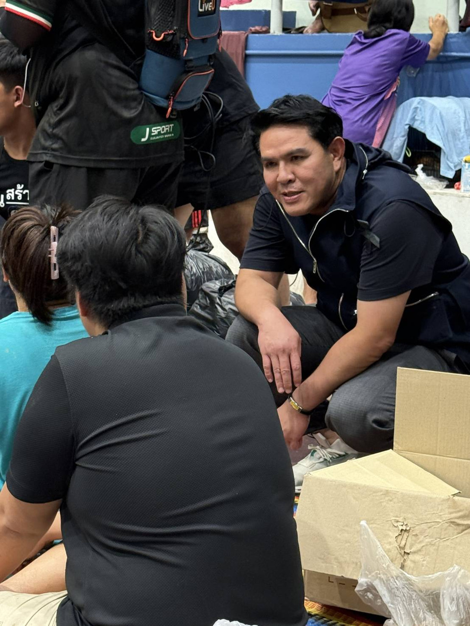 ต่อมาได้ออกเดินทางด้วยรถยนต์ จากมณฑลทหารบกที่ 42 ไปยังศูนย์พักพิงชั่วคราว อาคารศูนย์กีฬามหาวิทยาลัยสงขลานครินทร์ (ม.อ.)เพื่อเยี่ยมให้กำลังใจแก่ผู้ประสบภัย ก่อนลงพื้นที่ชุมชน ในเขตเทศบาลนครหาดใหญ่