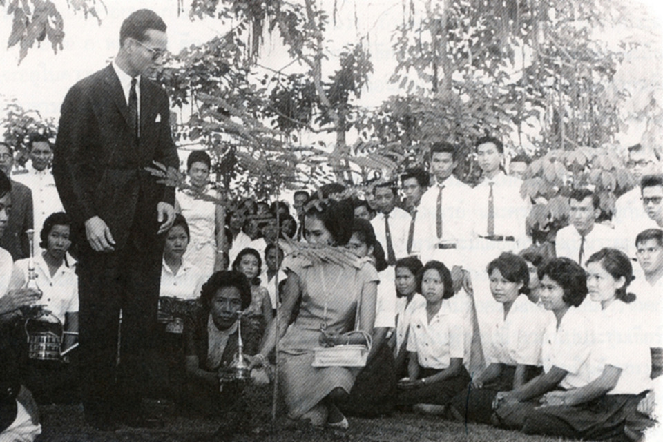วันที่ 29 พฤศจิกายน พุทธศักราช 2506 เวลา 15.30 นาฬิกา พระบาทสมเด็จพระบรมชนกาธิเบศ มหาภูมิพลอดุลยเดชมหาราช บรมนาถบพิตร เสด็จพระราชดำเนินพร้อมด้วย สมเด็จพระนางเจ้าสิริกิติ์ พระบรมราชินีนาถ พระบรมราชชนนีพันปีหลวง ทรงปลูกต้นนนทรี 9 ต้น อันเป็นต้นไม้สัญลักษณ์ประจำมหาวิทยาลัยเกษตรศาสตร์ ณ บริเวณสระน้ำ ด้านหน้าหอประชุม มหาวิทยาลัย เกษตรศาสตร์ ตามคำกราบบังคมทูลเชิญของสมาคมนิสิตเก่ามหาวิทยาลัยเกษตรศาสตร์ ในพระบรมราชูปถัมภ์ ในการนี้ นายธวัชชัย ไชยชนะ นายกสมาคม นิสิตเก่า ฯ และ หลวงอิงคศรีกสิการ (อินทรี จันทรสถิตย์) อธิการบดี เป็นผู้กราบบังคมทูลถวายรายงาน
