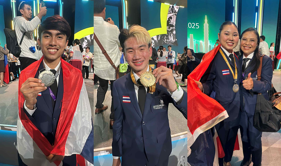 ธงชาติไทย โบกสะบัด เฮลั่น!! ไทเป ทีมเยาวชนไทย คว้า 3 เหรียญทอง แข่งขัน WorldSkills Asia Taipei 2025“ ที่ไต้หวัน ผู้ประกาศ ขานชื่อThailand รัวๆ คว้าเหรียญรางวัล รวม12 เหรียญ จาก ที่ส่งแข่งขันทั้งหมด 16 สาขา แถมได้ 1 เหรียญ “ฝีมือยอดเยี่ยม” ด้าน Web Technologiesเผย สาขาMechatronics ได้คะแนนรวมสูงสุด ได้เหรียญ The Best of Nation
