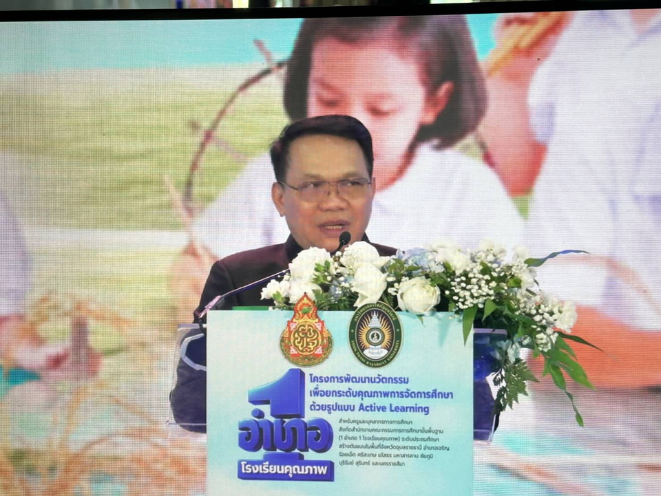 “Active Learning คือ หัวใจในการสร้างสรรค์นวัตกรรมใหม่ ๆ ซึ่งถ้าทำได้แล้วก็จะอยู่ในหัวใจของเด็ก ของครู เด็ก ๆ จะเจริญก้าวหน้า ไม่ว่าจะเรียนในสาขาใดก็จะสามารถใช้กระบวนการคิดในการสร้างนวัตกรรมได้ รวมถึงครูอาจารย์เองก็จะมีความสุข ทำให้เด็กมีส่วนร่วมในการเรียนรู้ไปพร้อมกับครู ซึ่งแน่นอนว่านโยบายของรัฐมนตรีว่าการกระทรวงศึกษาธิการ ที่ว่าถ้าครูมีผลงาน มีความรู้ ความสามารถก็จะประเมินวิทยฐานะตามศักยภาพของครู ก็จะเป็นขวัญกำลังใจในการทำงานให้กับครู ทำให้ครูทุ่มเทเวลาให้กับการเรียนการสอนมากขึ้น และจะมีรายได้จากผลการทำงานวิชาการด้วย ซึ่งเป็นผลที่เชื่อมโยงกันมาเมื่อเด็กได้ดี ครูก็ได้ดี สังคมไทยก็จะได้ดี เพราะทุกวันนี้เขาแข่งกันด้วยนวัตกรรมใหม่ ๆ ดังนั้นขอให้ครูอาจารย์ผู้บริหารภาคภูมิใจกับความเป็นผู้นำในการเปลี่ยนแปลง เป็นคนที่จุดประกายการเรียนรู้ให้กับเด็ก ๆ ต่อไป”เลขาธิการ กพฐ.กล่าว