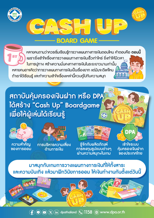 นางปิยาภรณ์ โพธิ์กลิ่น รองผู้อำนวยการสถาบันคุ้มครองเงินฝาก เป็นตัวแทนของ สคฝ. มอบ “บอร์ดเกม CASH UP” สื่อสร้างสรรค์เพื่อการเรียนรู้ที่พัฒนาโดย สคฝ. จำนวน 900 ชุด ให้กับโรงเรียนระดับชั้นมัธยมศึกษาในสังกัด กทม. กว่า 109 แห่ง โดยมี นายชนินทร์ พึ่งบุญ ณ อยุธยา ผู้อำนวยการกองเทคโนโลยีการศึกษา สำนักการศึกษา กรุงเทพมหานคร เป็นตัวแทนของ กทม. รับมอบ ณ สถาบันคุ้มครองเงินฝาก ตามที่ สคฝ. เล็งเห็นถึงความสำคัญของการส่งเสริมความรู้ทางการเงินพื้นฐาน รวมถึงความรู้ความเข้าใจเกี่ยวกับระบบคุ้มครองเงินฝากให้กับกลุ่มเด็กและเยาวชน รวมถึงครูและอาจารย์ผู้สอนที่จะช่วยถ่ายทอดความตระหนักรู้เรื่องการวางแผนทางการเงินให้กับนักเรียน ล้วนแล้วแต่เป็นกลุ่มเป้าหมายที่สำคัญในการสร้างรากฐานความรู้ทางการเงินที่มั่นคงในระยะยาว สคฝ. จึงได้มีการลงนามในบันทึกข้อตกลงความร่วมมือ (MOU) เรื่องการดำเนินโครงการส่งเสริมความรู้ทางการเงินพื้นฐานและการคุ้มครองเงินฝากกับ กทม. ขึ้นเมื่อวันที่ 1 ตุลาคม 2568 เพื่อส่งเสริมความรู้ทางการเงินพื้นฐาน รวมถึงเสริมสร้างความเข้าใจเกี่ยวกับการคุ้มครองเงินฝากผ่านสื่อและกิจกรรมการเรียนรู้ที่เหมาะกับช่วงวัยและบริบทของสถานศึกษา อาทิ การเรียนรู้ผ่าน “บอร์ดเกม CASH UP” ที่พัฒนาโดย สคฝ. ให้เยาวชนใช้เป็นสื่อการเรียนรู้ที่ผสานความสนุกที่กำลังได้รับความนิยมอย่างแพร่หลายในหมู่เยาวชนเข้ากับสาระด้านการวางแผนทางการเงินและการคุ้มครองเงินฝากอย่างสร้างสรรค์ เพื่อส่งเสริมการเรียนรู้ด้านการเงินในรูปแบบที่สนุก เข้าใจง่าย และสามารถนำไปประยุกต์ใช้ได้จริงในชีวิตประจำวัน เข้าใจหลักการบริหารเงินอย่างถูกต้อง และร่วมวางรากฐานทางการเงินที่มั่นคงให้กับตนเองและสังคมในอนาคต