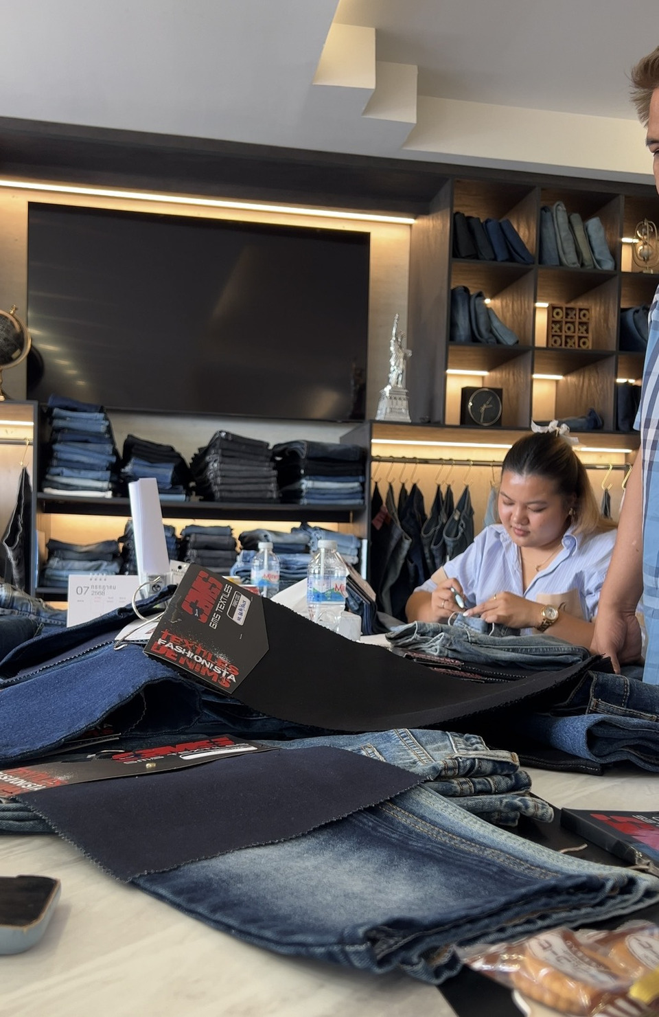 ซินไม่เพียงแต่เรียนรู้ธุรกิจจากตำราแต่ยังลงมือทำธุรกิจจริง เธอเริ่มโปรเจกต์ผลิตกางเกงยีนส์ร่วมกับพาร์ตเนอร์แบรนด์ “KBR Jeans Garment” โดยนำองค์ความรู้จากสาขาธุรกิจดิจิทัลมาประยุกต์ใช้ในทุกขั้นตอน ตั้งแต่การวางกลยุทธ์การตลาด การสร้างแบรนด์ การใช้ AI ลดขั้นตอนซ้ำซ้อน ไปจนถึงการวางแผนสื่อและยิงแอดโฆษณาออนไลน์