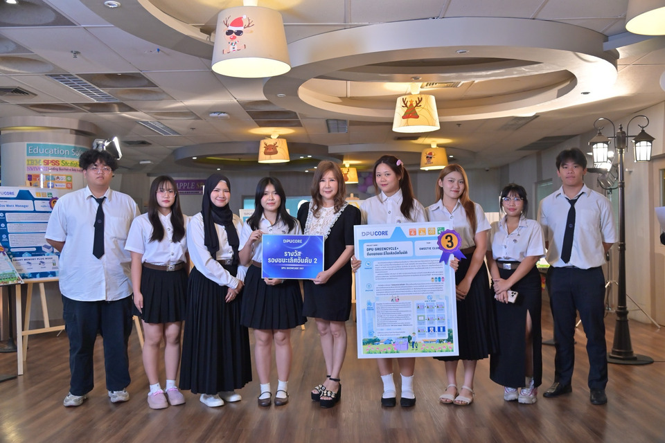 ท่ามกลางวิกฤตสิ่งแวดล้อมและปัญหาขยะล้นเมืองที่ทวีความรุนแรงทั่วโลก มหาวิทยาลัยธุรกิจบัณฑิตย์ (DPU) ได้นำคำถามเพื่อการพัฒนาและแก้ไขปัญหาสังคมมาขับเคลื่อนผ่านการเรียนการสอนในชุดรายวิชา DPU Core ซึ่งเป็นแกนกลางการเรียนรู้ของนักศึกษาทุกคณะ ทุกสาขา ที่เน้นพัฒนาทักษะศตวรรษที่ 21 อาทิ การคิดเชิงระบบ การคิดเชิงสร้างสรรค์ การทำงานเป็นทีม การสื่อสาร และความตระหนักต่อสังคมและสิ่งแวดล้อม โดยมีงาน DPU Core Showcase Day เป็นเวทีปลายทาง ตามแนวคิดของ ดร.ดาริกา ลัทธพิพัฒน์ อธิการบดี ที่เปิดโอกาสให้นักศึกษาได้นำโปรเจกต์จากรายวิชาออกมานำเสนอและทดสอบแนวคิดต่อสายตาคณาจารย์ ผู้บริหาร และผู้เข้าร่วมงานจากภายนอกมหาวิทยาลัย เมื่อวันที่ 19 พฤศจิกายน 2568 ที่ผ่านมา ณ ศูนย์เรียนรู้และหอสมุด DPU