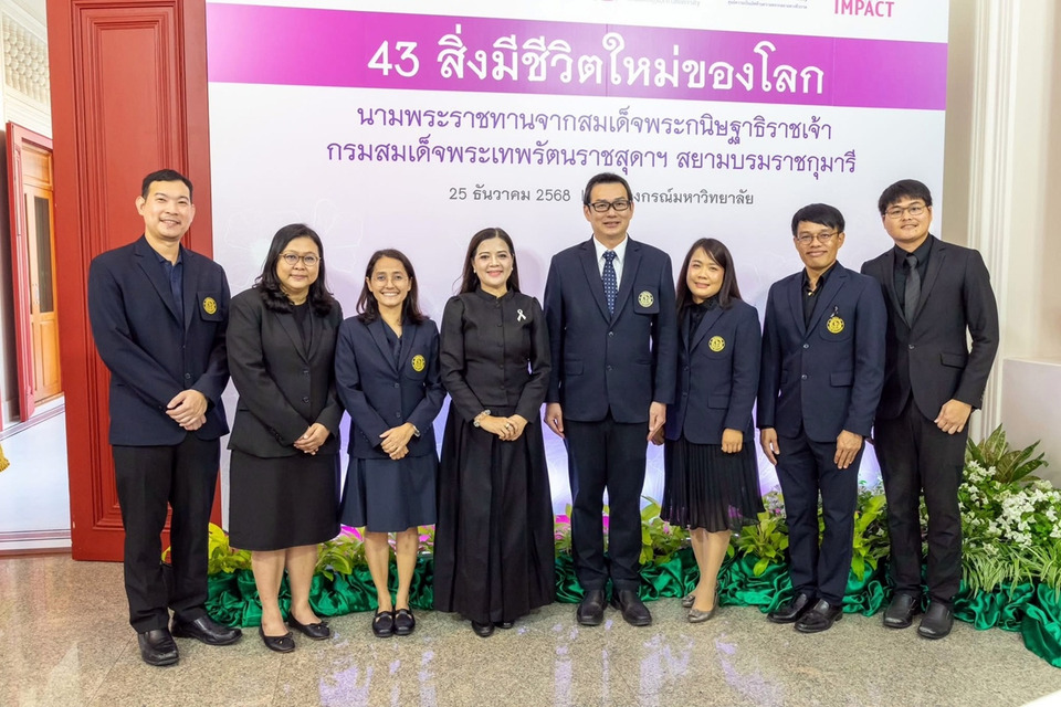วันที่ 25 ธ.ค.68 ณ ห้อง 111 อาคารมหาจุฬาลงกรณ์ จุฬาลงกรณ์มหาวิทยาลัย รศ.ดร.วันชัย ปลื้มภาณุภัทร คณบดีคณะวิทยาศาสตร์ มหาวิทยาลัยเกษตรศาสตร์ พร้อมด้วยคณะนักวิจัย จากมหาวิทยาลัยเกษตรศาสตร์ ที่ค้นพบสิ่งมีชีวิตชนิดใหม่ สกุลใหม่ของโลก ซึ่งได้รับพระราชทานชื่อวิทยาศาสตร์ภายใต้พระนามของสมเด็จพระกนิษฐาธิราชเจ้า กรมสมเด็จพระเทพรัตนราชสุดาฯ สยามบรมราชกุมารี เนื่องในโอกาสมหามงคล เฉลิมพระชนมายุ 70 พรรษา พุทธศักราช 2568 เพื่อเฉลิมพระเกียรติและแสดงความสำนึกในพระมหากรุณาธิคุณ อย่างหาที่สุดมิได้ ในพระราชกรณียกิจด้านอนุกรมวิธานและความหลากหลายทางชีวภาพ เข้าร่วมงาน Chula the Impact ครั้งที่ 36 ในหัวข้อ “43 สิ่งมีชีวิตใหม่ของโลก” นามพระราชทานจากสมเด็จพระกนิษฐาธิราชเจ้า กรมสมเด็จพระเทพรัตน ราชสุดา ฯ สยามบรมราชกุมารี ซึ่งนักอนุกรมวิธานชาวไทยและต่างประเทศจำนวน 130 คน จากสถาบันภายในประเทศ 31 แห่ง และต่างประเทศ 14 แห่ง ได้ร่วมกันเขียนบทความจำนวน 40 เรื่อง นำเสนอการค้นพบสิ่งมีชีวิตใหม่รวม 41 ชนิดใหม่ และ 2 สกุลใหม่ นับเป็นวาระสำคัญที่ไม่เคยเกิดขึ้นมาก่อน โดยมี ศ.ดร.วิเลิศ ภูริวัชร อธิการบดีจุฬาฯ เป็นประธานกล่าวเปิดงาน ศ.ดร.สมศักดิ์ ปัญหา ผู้อำนวยการศูนย์ความเป็นเลิศด้านความหลากหลายทางชีวภาพ จุฬาฯ แถลงรายละเอียดการค้นพบสิ่งมีชีวิตชนิดใหม่ของโลก ภายในงานมีการจัดนิทรรศการสิ่งมีชีวิตชนิดใหม่ของโลกทั้ง 43 ชนิด ด้วย
