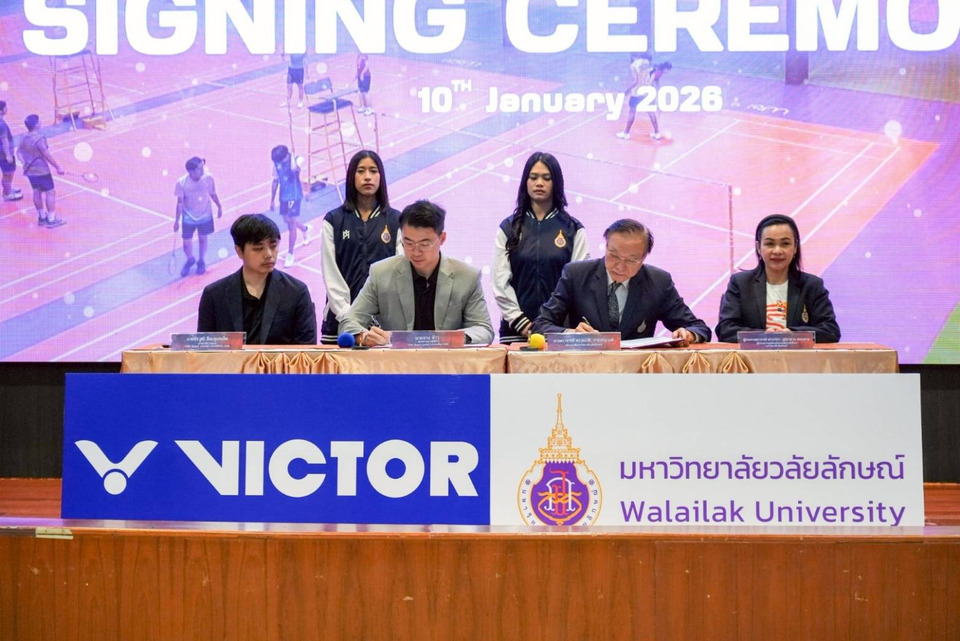 เมื่อวันที่ 10 มกราคม 2569 ที่ผ่านมา ศาสตราจารย์ ดร.สมบัติ ธำรงธัญวงศ์ อธิการบดีมหาวิทยาลัยวลัยลักษณ์ และ นายจาง ห้าว ผู้ช่วยกรรมการผู้จัดการ บริษัท วิคเตอร์ สปอร์ตส์ (ประเทศไทย) จำกัด ร่วมกันลงนามในบันทึกข้อตกลงความร่วมมือในการพัฒนากีฬาแบดมินตันสู่ความเป็นเลิศ หนุนอุปกรณ์ครบวงจร พร้อมสร้างโอกาสฝึกประสบการณ์วิชาชีพให้นักศึกษา โดยคณะผู้บริหารของทั้งสองหน่วยงาน ร่วมเป็นสักขีพยาน ณ ห้องประชุม คณะสถาปัตย์ฯ ม.แม่โจ้ จ.เชียงใหม่