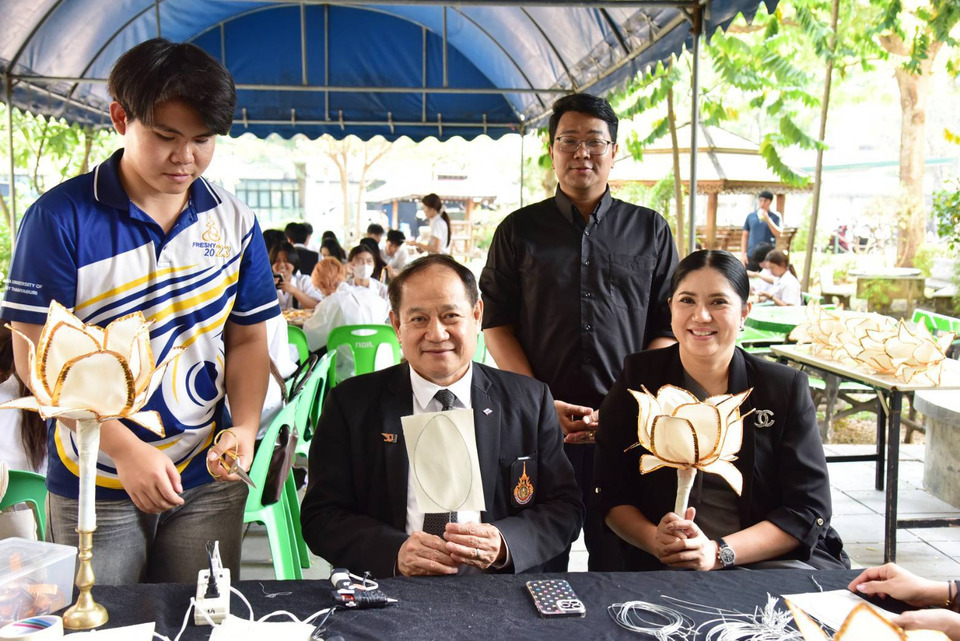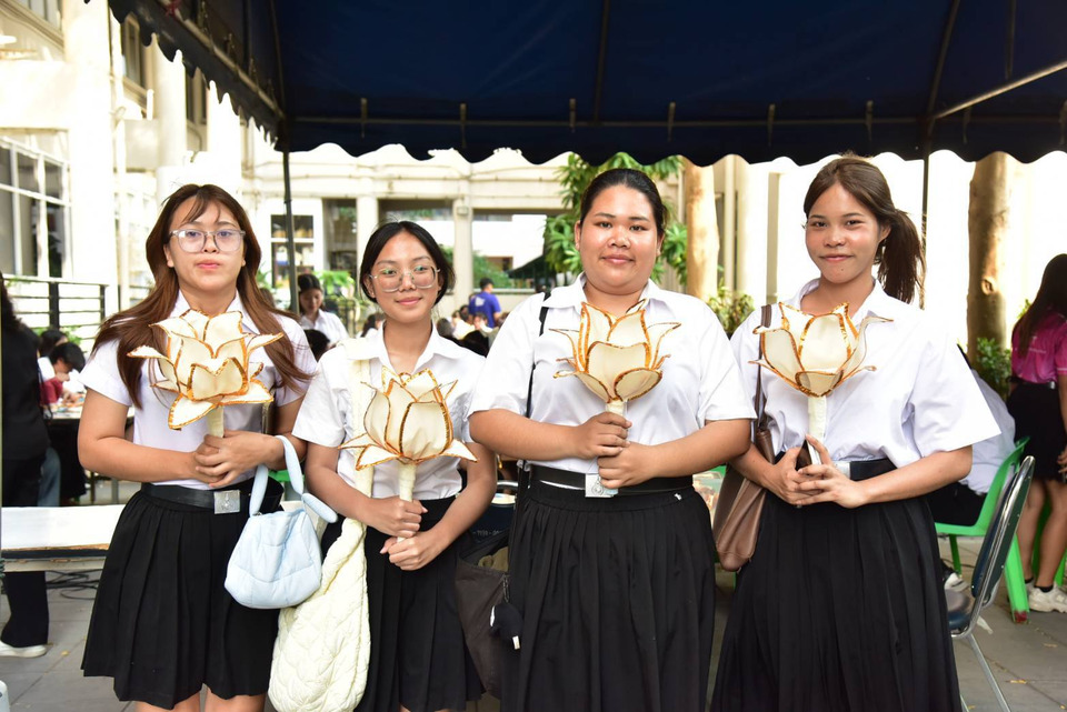 นายปรัญญา พันธุ์ประเสริฐ นักศึกษาสาขาอุตสาหกรรมการบริการการบิน คณะศิลปศาสตร์ เล่าว่า ตนเองตั้งใจใช้เวลาว่างจากการเรียนมาช่วยสนับสนุนงานส่วนรวมเพื่อสร้างคุณค่าให้กับตนเองและมหาวิทยาลัย โดยรู้สึกภาคภูมิใจและปลาบปลื้มใจเป็นอย่างยิ่งที่ได้ร่วมเป็นส่วนหนึ่งในของการประดิษฐ์โคมประทีป 1 ใน 993 ดวง เพื่อใช้ในพิธีสำคัญน้อมรำลึกถึงสมเด็จพระพันปีหลวง ซึ่งการก้าวข้ามจากศาสตร์ด้านการบินมาสู่งานประณีตศิลป์ในครั้งนี้ ไม่เพียงแต่เป็นการฝึกทักษะใหม่ แต่ยังเป็นการแสดงออกถึงความจงรักภักดีและภาพลักษณ์นักศึกษายุคใหม่ที่มีจิตสาธารณะ