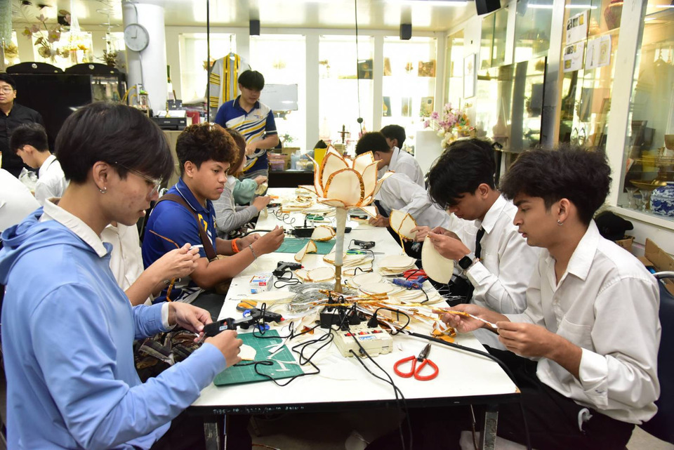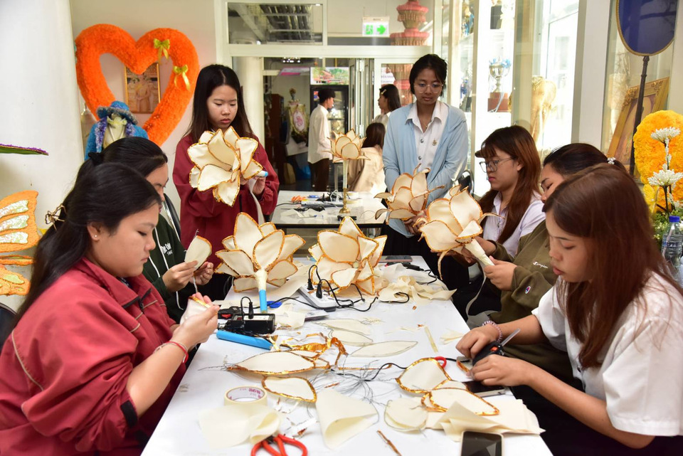 นายอภิสิทธิ์ สิทธิวิธี นักศึกษาสาขาสถาปัตยกรรมภายใน คณะสถาปัตยกรรมศาสตร์ เล่าว่า การได้เปลี่ยนบทบาทจากผู้พบเห็นมาเป็นผู้ลงมือประดิษฐ์ด้วยตนเอง ทำให้ได้เรียนรู้กระบวนการทำงานศิลป์ที่ละเอียดอ่อนและช่วยในการฝึกสมาธิได้เป็นอย่างดี ซึ่งเป็นทักษะสำคัญที่สามารถนำไปปรับใช้กับการเรียนสถาปัตยกรรมได้ในอนาคต โดยตนรู้สึกยินดีที่ได้ใช้ความสามารถเชิงช่างมาร่วมทำประโยชน์ในฐานะจิตอาสา เพื่อถวายความจงรักภักดีและน้อมรำลึกถึงพระมหากรุณาธิคุณของสมเด็จพระพันปีหลวง