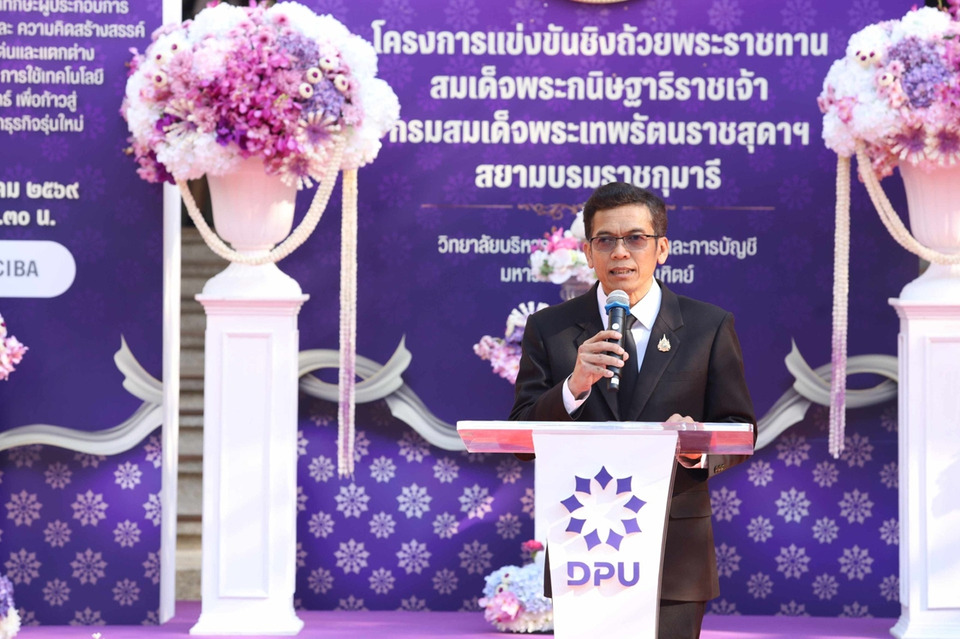 นายสถาพร ร่วมนาพะยา รองอธิบดีกรมพัฒนาธุรกิจการค้า กระทรวงพาณิชย์ กล่าวว่า โครงการนี้สะท้อนให้เห็นถึงความมุ่งมั่นของ DPU ในการพัฒนาทักษะด้านธุรกิจ นวัตกรรม และความเป็นผู้ประกอบการให้กับเยาวชนไทย ซึ่งสอดคล้องกับภารกิจของกรมพัฒนาธุรกิจการค้าในการส่งเสริมผู้ประกอบการยุคใหม่ ให้มีศักยภาพ มีความคิดสร้างสรรค์ และสามารถแข่งขันในเวทีระดับประเทศและระดับสากลได้ การแข่งขันครั้งนี้ไม่เพียงเป็นเวทีแห่งการประชันความรู้ แต่ยังเป็นพื้นที่การเรียนรู้จากการปฏิบัติจริง การทำงานเป็นทีม และการแก้ไขปัญหาเชิงธุรกิจ ซึ่งเป็นทักษะสำคัญในโลกเศรษฐกิจยุคดิจิทัล ขอให้นักเรียน นักศึกษาใช้เวทีการแข่งขันนี้เป็นโอกาสในการพัฒนาตนเอง แสดงศักยภาพอย่างเต็มที่ และนำประสบการณ์ที่ได้รับไปต่อยอดในการสร้างคุณค่าให้กับสังคมและประเทศชาติต่อไป