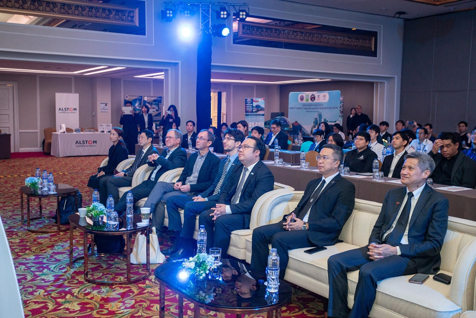 โอกาสนี้ ดร.ณิรวัฒน์ ธรรมจักร์ ผู้อำนวยการหน่วยบริหารและจัดการทุนด้านการพัฒนากำลังคน และทุนด้านการพัฒนาสถาบันอุดมศึกษา การวิจัยและการสร้างนวัตกรรม (บพค.) ปฏิบัติหน้าที่ผู้อำนวยการหน่วยบริหารจัดการทุนด้านเทคโนโลยีและนวัตกรรมเพื่ออุตสาหกรรมแห่งอนาคต กล่าวว่า “บพค. มุ่งเน้นการสนับสนุนทุนในลักษณะครบวงจรตลอด Value Chain ตั้งแต่การพัฒนากำลังคนขั้นแนวหน้า การสร้างองค์ความรู้ใหม่ผ่านงานวิจัย ไปจนถึงการเชื่อมโยงผลงานวิจัยสู่การใช้งานจริงในภาคอุตสาหกรรม เวทีนี้จึงเป็นพื้นที่สำคัญในการสะท้อนบทบาทของการบริหารทุนที่เน้นผลลัพธ์ และการสร้างความเชื่อมโยงระหว่างนโยบาย ภาคการศึกษา และภาคอุตสาหกรรมอย่างเป็นรูปธรรม นอกจากนี้ บพค. ยังส่งเสริมกลไกการสร้างระบบนิเวศการพัฒนากำลังคนที่ยั่งยืนผ่านการผลักดันหลักสูตรที่ตอบโจทย์ความต้องการเฉพาะทางด้านระบบราง โดยมุ่งเน้นกำลังคนทักษะสูงปริญญาโท-เอกแบบแซนด์บอกซ์ (Higher Education Sandbox) จำนวน 2 หลักสูตร โดยการจับคู่ระหว่างภาคอุดมศึกษา-บริษัทเอกชน-สถาบันวิจัยที่เกี่ยวข้อง อันเป็นการผสาน 3 ภาคส่วนรูปแบบ Triple Helix ให้สามารถร่วมกันทำงาน ร่วมลงทุนและร่วมผลิตบัณฑิตสมรรถนะสูงได้”