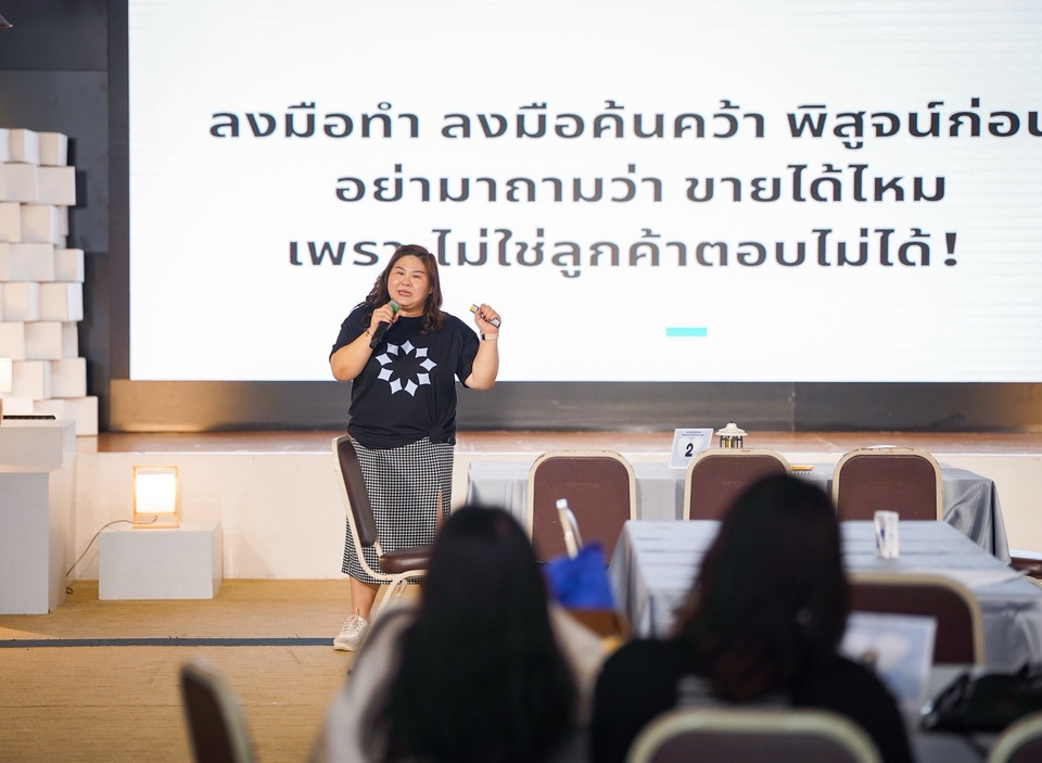 นอกจากนี้ นักศึกษาสามารถต่อยอดทักษะเชิงเทคนิคผ่านเวิร์กช็อป "AI for Entrepreneur" โดย คุณอนนต์ อุบลโกมุท จากฝ่ายนวัตกรรมหลักสูตรและการสอน สถาบันการเรียนรู้ตลอดชีวิต ที่มาถ่ายทอดเทคนิคการออกแบบคำสั่ง (Prompt Engineering) ผ่านกรอบ Customer Journey เพื่อให้นำ AI ไปประยุกต์ใช้ในการสื่อสารแบรนด์ได้อย่างมีประสิทธิภาพ ควบคู่กับการลดขั้นตอนการทำงานที่ซับซ้อนให้เป็นระบบและประหยัดเวลาได้มากขึ้น