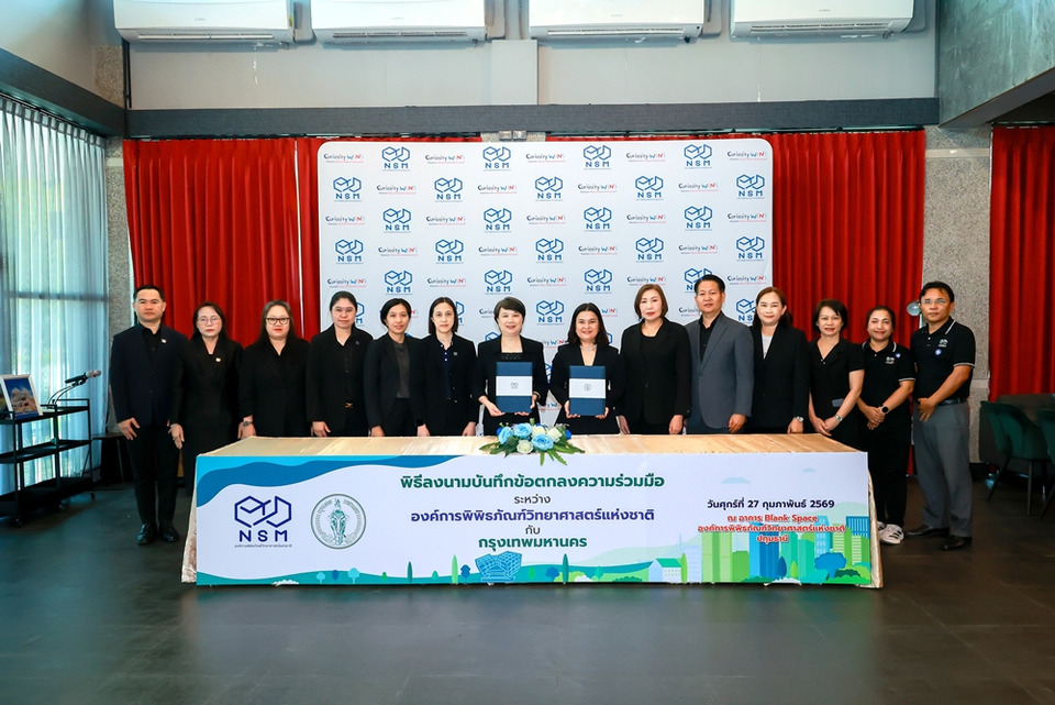 เมื่อวันที่ 27 กุมภาพันธ์ 2569 ดร.กรรณิการ์ เฉิน รองผู้อำนวยการองค์การพิพิธภัณฑ์วิทยาศาสตร์แห่งชาติ (อพวช.) หรือ NSM และคุณวิไล เจริญชัยสกุล ผู้อำนวยการสำนักวัฒนธรรม กีฬา และการท่องเที่ยว กรุงเทพมหานคร ร่วมลงนามบันทึกความร่วมมือ เพื่อส่งเสริม พัฒนา และยกระดับการเรียนรู้ด้านวิทยาศาสตร์ เทคโนโลยี นวัตกรรม และสิ่งแวดล้อมให้เข้าถึงประชาชนทุกกลุ่มอย่างทั่วถึง ความร่วมมือครั้งนี้ มุ่งสร้างเครือข่ายแหล่งเรียนรู้ที่เข้มแข็งและเป็นรูปธรรม ผ่านการแบ่งปันองค์ความรู้อย่างสร้างสรรค์และยั่งยืน พร้อมเดินหน้าผลักดันให้เกิดกิจกรรมและโครงการที่ช่วยเสริมสร้างประสบการณ์การเรียนรู้ในมิติต่าง ๆ แก่เยาวชนและประชาชนในพื้นที่กรุงเทพมหานคร โดยมี นางสาวจีรพัชรินทร์ อรรถจินดา ผู้อำนวยการสำนักวิทยาศาสตร์สู่ชุมชน NSM และคุณพนิดา แก้วมาก รองผู้อำนวยการสำนักวัฒนธรรม กีฬา และการท่องเที่ยว กรุงเทพมหานคร ร่วมเป็นสักขีพยานในพิธีลงนามฯ ซึ่งจัดขึ้น ณ อาคาร The Blank Space อพวช. ต.คลองห้า อ.คลองหลวง จ.ปทุมธานี