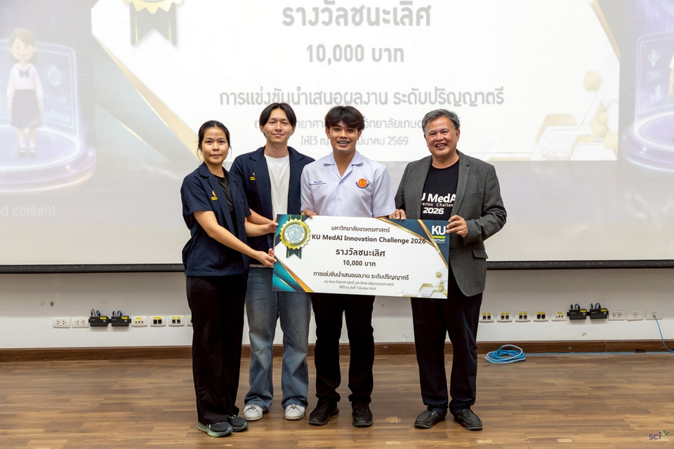 วันที่ 9 มี.ค.69 มหาวิทยาลัยเกษตรศาสตร์ (มก.) ประกาศความสำเร็จในการเป็นศูนย์กลางขับเคลื่อน “นวัตกรรมสุขภาพดิจิทัล” ของไทย ผ่านการจัดการแข่งขัน “KU MedAI Innovation Challenge 2026” รอบชิงชนะเลิศ ภายใต้แนวคิด “Beyond Boundaries: Advancing Medicine and Public Health Through AI Innovation” เมื่อวันที่ 7 มีนาคม 2569 ณ อาคารวิทยาศาสตร์กายภาพ 45 ปี คณะวิทยาศาสตร์ มก. ซึ่งเวทีนี้ไม่เพียงแต่เป็นการประลองไอเดีย แต่คือการสร้างระบบนิเวศแห่งการเรียนรู้ (Learning Ecosystem) ที่เชื่อมโยงศาสตร์ด้านเทคโนโลยีปัญญาประดิษฐ์เข้ากับระบาดวิทยาและการแพทย์ เพื่อเป้าหมายสุขภาวะที่ดีของมวลมนุษยชาติ โดยมี 5 คณะหลักด้านวิทยาศาสตร์สุขภาพร่วมเป็นเจ้าภาพจัดการแข่งขัน ได้แก่ คณะวิทยาศาสตร์ และภาควิชาวิทยาการคอมพิวเตอร์ คณะแพทยศาสตร์ คณะพยาบาลศาสตร์ คณะสาธารณสุขศาสตร์ คณะเภสัชศาสตร์ และศูนย์เทคโนโลยีและนวัตกรรมปัญญาประดิษฐ์เพื่อสุขภาพ (AIIH) มหาวิทยาลัยเกษตรศาสตร์