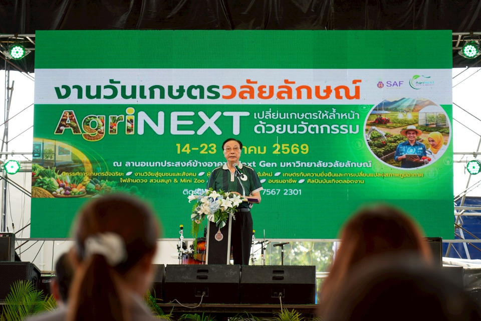 มหาวิทยาลัยวลัยลักษณ์ ผนึกกำลังภาครัฐและเอกชน จัดงาน "เกษตรวลัยลักษณ์ ประจำปี 2569" อย่างยิ่งใหญ่ ระหว่างวันที่ 14-23 มีนาคม 2569 ชูแนวคิด "AgriNext: เปลี่ยนเกษตรให้ล้ำหน้าด้วยนวัตกรรม" มุ่งถ่ายทอดเทคโนโลยี งานวิจัย และนวัตกรรมสู่ชุมชน หวังช่วยเกษตรกรลดต้นทุน เพิ่มมูลค่า และขับเคลื่อนเศรษฐกิจฐานรากของภาคใต้ให้เติบโตอย่างยั่งยืน พร้อมแข่งขันในเวทีโลก