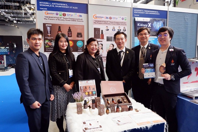 1. นวัตกรรม “เดอร์เมสทิคัส”: คว้ารางวัลเหรียญทอง (Gold Prize) และรางวัลพิเศษ NRCT Honorable Mention Award “เดอร์เมสทิคัส” คือเวชสำอางนาโนจาก “จิ้งหรีดไทย” พัฒนาโดย ดร.ภก.วัชระ กาญจนกวินกุล ผู้อำนวยการโรงงานผลิตเภสัชภัณฑ์ในพระดำริ สำนักงานราชวิทยาลัยจุฬาภรณ์ ร่วมกับคณะผู้วิจัยจากมหาวิทยาลัยเชียงใหม่และ University of Copenhagen ซึ่งเป็นการยกระดับแมลงกินได้สู่ผลิตภัณฑ์ความงามมูลค่าสูง ด้วยเทคโนโลยีนาโนอิมัลชันที่ช่วยให้สารสกัดซึมลึก ต้านอนุมูลอิสระ และชะลอวัยได้อย่างมีประสิทธิภาพ ถือเป็นก้าวกระโดดสำคัญของเศรษฐกิจชีวภาพไทย