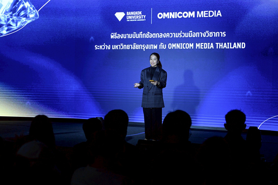 โดยมี ผศ.ดร.อรรยา สิงห์สงบ รองอธิการบดีสายวิชาการ มหาวิทยาลัยกรุงเทพ กล่าวว่า ปี 2026 โลกของ Digital Content กำลังเผชิญความท้าทายครั้งใหญ่ เมื่อ AI เข้ามาเปลี่ยนวิธีการสร้างคอนเทนต์อย่างสิ้นเชิง ขณะที่พฤติกรรมผู้บริโภคมีช่วงความสนใจสั้นลง ท่ามกลางคอนเทนต์จำนวนมหาศาลที่เกิดขึ้นในทุกวันมหาวิทยาลัยกรุงเทพ ในฐานะ Creative University เลือกมองความท้าทายเหล่านี้เป็น “โอกาส” สำหรับหลักสูตร Global Creator and Influencer Branding คือการรวมพลังแห่งความคิดสร้างสรรค์ของมหาวิทยาลัยกรุงเทพ ผสานกับความเชี่ยวชาญระดับโลกของ Omnicom Media จะกลายเป็นแรงขับเคลื่อนสำคัญให้กับวงการศึกษาและอุตสาหกรรมสร้างสรรค์ ไม่ใช่เพียงในระดับประเทศ แต่สามารถเติบโตสู่ระดับโลกได้อย่างยั่งยืน และนักศึกษาสามารถเลือกเส้นทางที่ถนัดและพัฒนาตัวเองผ่านประสบการณ์จริงเป็นบุคลากรที่พร้อมทำงานได้ทันที”