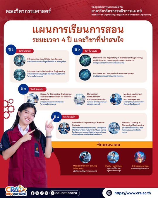 โดยหลักสูตรนี้เราไม่ได้สร้างแค่คนทำงานกับเครื่องกล แต่เราสร้างวิศวกรที่เข้าใจหัวใจของการรักษา เพื่อสร้างนวัตกรรมที่ช่วยชีวิตคนได้จริง"