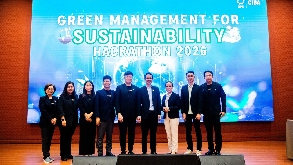 วิทยาลัยบริหารธุรกิจนวัตกรรมและการบัญชี (CIBA) มหาวิทยาลัยธุรกิจบัณฑิตย์ (DPU) เดินหน้าพัฒนาศักยภาพผู้เรียนด้านการจัดการและธุรกิจอย่างต่อเนื่อง จัดกิจกรรม “Green Management for Sustainability Hackathon 2026” เพื่อเปิดพื้นที่ให้นักศึกษาได้แสดงศักยภาพผ่านการพัฒนาแนวคิดธุรกิจสีเขียวที่สามารถต่อยอดสู่การใช้งานจริงในโลกธุรกิจ โดยมุ่งเน้นการเรียนรู้เชิงปฏิบัติที่ผสานองค์ความรู้ด้านความยั่งยืนเข้ากับการคิดเชิงกลยุทธ์และการแก้ปัญหาอย่างเป็นระบบ จัดขึ้นเมื่อวันพฤหัสบดีที่ 2 เมษายน 2569 ณ ห้องประชุมดร.ไสว สุทธิพิทักษ์ มหาวิทยาลัยธุรกิจบัณฑิตย์