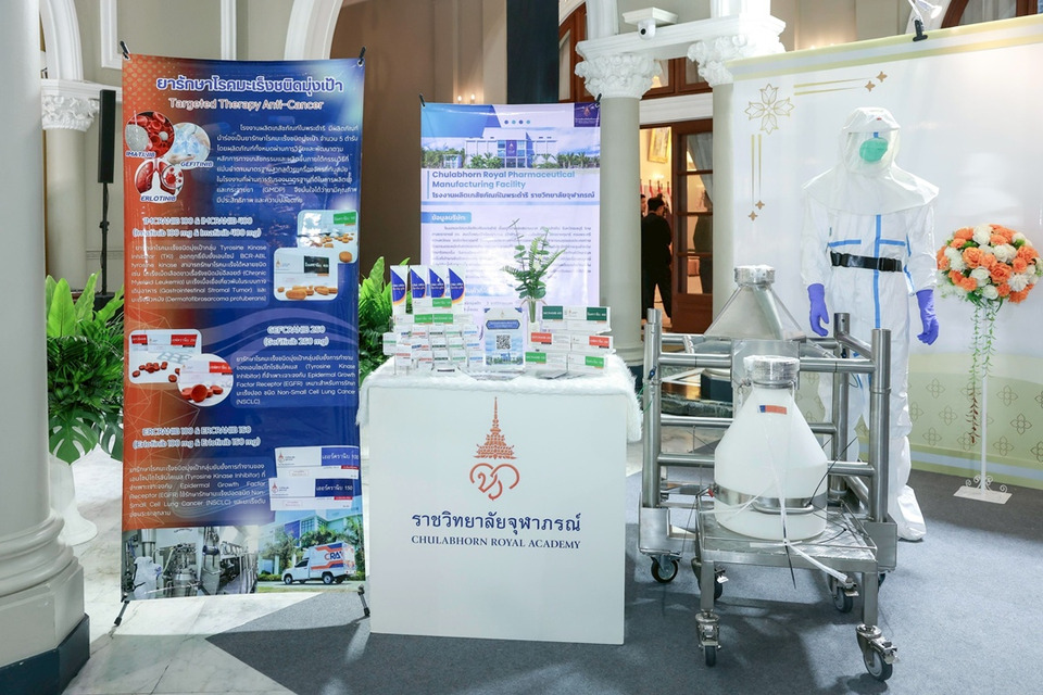 นอกจากนี้ ภายในงานโรงงานผลิตเภสัชภัณฑ์ในพระดำริ ราชวิทยาลัยจุฬาภรณ์ ยังได้ร่วมจัดนิทรรศการแสดงผลงานนวัตกรรมด้านการส่งเสริมและพัฒนาสาธารณสุข โดยนำเสนอกระบวนการและเครื่องมือในการผลิตยารักษาโรคมะเร็งซึ่งทำงานภายใต้ระบบปิดเพื่อควบคุมสภาพแวดล้อมและป้องกันการปนเปื้อน รวมทั้งจัดแสดงผลงานยารักษามะเร็งมุ่งเป้า (Targeted Therapy) ชนิดเม็ดที่ยับยั้งการทำงานของเอนไซม์ไทโรซีนไคเนส เป็นผลิตภัณฑ์กลุ่มแรกที่โรงงานดำเนินการผลิต โดยยาอิมครานิบ 100 (IMCRANIB 100) ซึ่งมีข้อมูลด้านคุณภาพ ประสิทธิภาพ และความปลอดภัยครบถ้วน ได้รับทะเบียนยาจากสำนักงานคณะกรรมการอาหารกระทรวงสาธารณสุข เมื่อวันที่ 20พฤษภาคม พ.ศ. 2568
