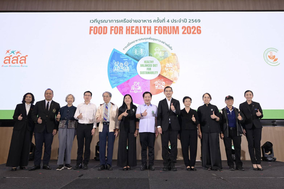 วันที่ 2 เม.ย. 2569 ที่ห้องไดมอนด์ บอลรูม โรงแรมแกรนด์ ริชมอนด์ จังหวัดนนทบุรี สำนักงานกองทุนสนับสนุนการสร้างเสริมสุขภาพ (สสส.) ร่วมกับภาคีเครือข่ายด้านอาหารเพื่อสุขภาวะ จัดงาน “เวทีบูรณาการเครือข่ายอาหาร ครั้งที่ 4 ประจำปี 2569” หรือ Food for Health Forum 2026 ภายใต้แนวคิด “การบริโภคอาหารสมดุลเพื่อสุขภาวะอย่างยั่งยืน” ระหว่างวันที่ 1-2 เม.ย. 2569 เพื่อเป็นเวทีกลางในการแลกเปลี่ยนเรียนรู้สถานการณ์ด้านอาหาร รูปแบบการขับเคลื่อนระบบอาหารตลอดห่วงโซ่ และข้อเสนอแนะเชิงนโยบายสู่การบริโภคอาหารอย่างสมดุลเพื่อสุขภาวะ