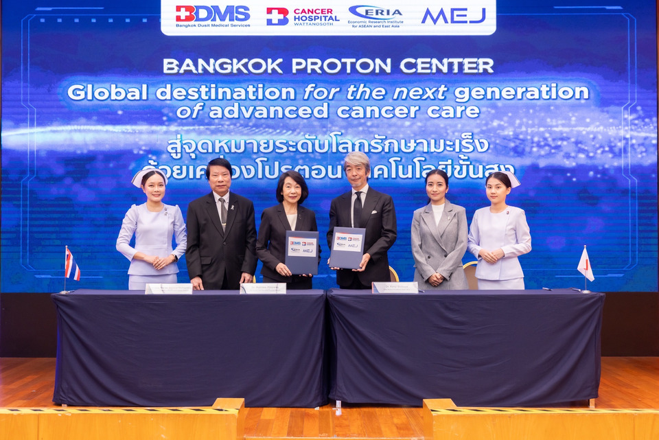 เมื่อวันที่ 26 พฤศจิกายน 2568 บริษัท กรุงเทพดุสิตเวชการ จำกัด (มหาชน) หรือ BDMS เครือข่ายโรงพยาบาลเอกชนชั้นนำของประเทศไทย มุ่งจุดหมายระดับโลกรักษามะเร็งด้วยเครื่องโปรตอน เทคโนโลยีขั้นสูงในภาคเอกชนไทย “Global destination for the next generation of advanced cancer care” โดยผนึกกำลังกับ Medical Excellence JAPAN (MEJ) และ Economic Research Institute for ASEAN and East Asia (ERIA) ภายใต้การสนับสนุนของรัฐบาลญี่ปุ่น เดินหน้าพัฒนาการรักษาโรคมะเร็งด้วย 'โปรตอนบำบัด' เทคโนโลยีรังสีขั้นสูง เริ่มโครงการก่อสร้าง Bangkok Proton Center ศูนย์โปรตอนบำบัดในภาคเอกชน ที่โรงพยาบาลวัฒโนสถ Cancer Hospital เพื่อยกระดับมาตรฐานการดูแลผู้ป่วยมะเร็งในไทยไปสู่ระดับสากล และส่งเสริมคุณภาพชีวิตที่ดีขึ้นอย่างชัดเจน