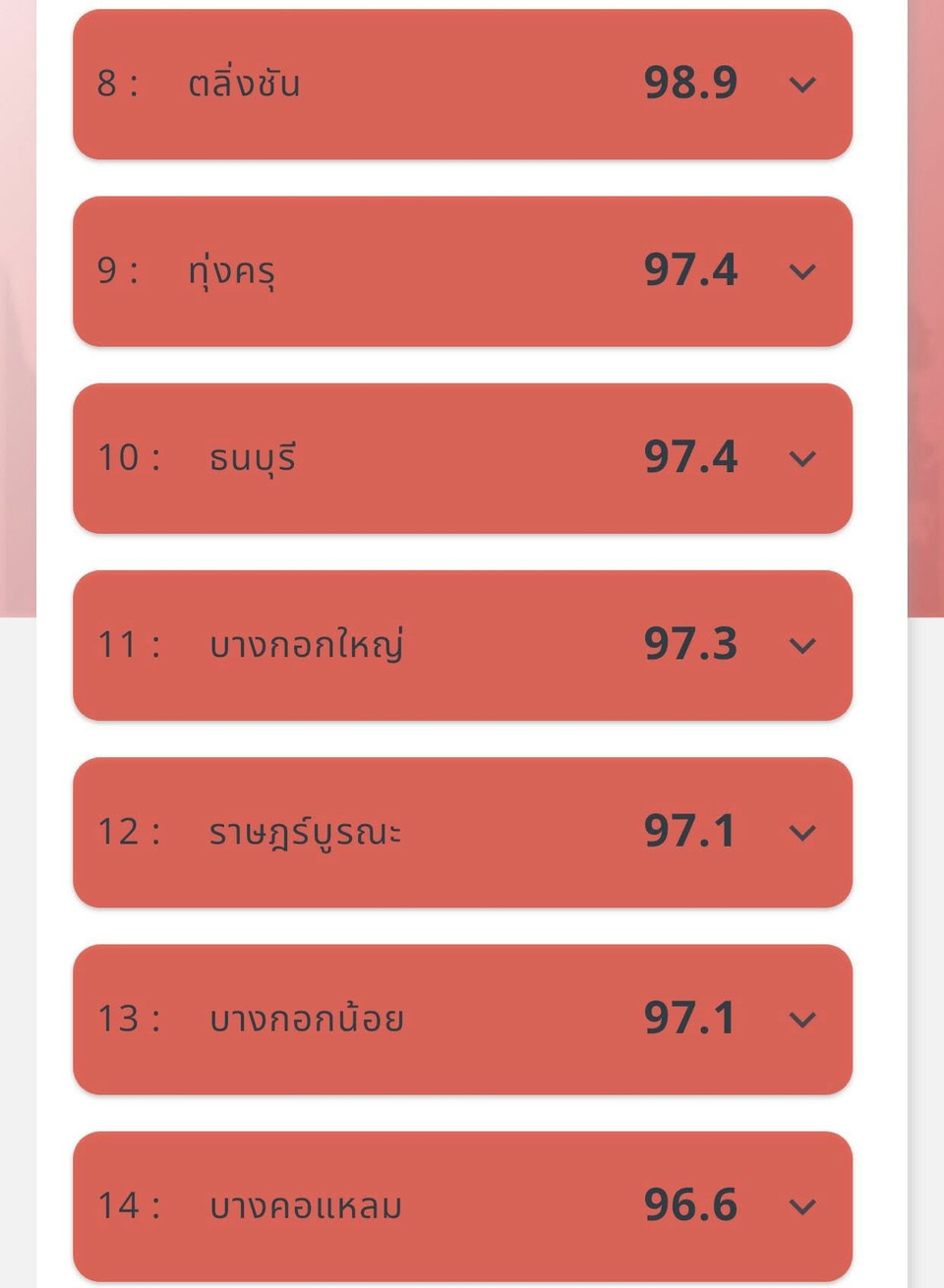 เช่น #หนองแขม #บางบอน #บางแค #ทวีวัฒนา #บางขุนเทียน #ภาษีเจริญ #จอมทอง #ตลิ่งชัน #ทุ่งครุ #ธนบุรี #บางกอกใหญ่ #ราษฎร์บูรณะ #บางกอกน้อย #บางคอแหลม #คลองสาน เป็นต้น ทั้งนี้ เมื่อช่วงเวลา 05.00 น. ที่ผ่านมา ทุกเขตของ กทม. ก็พบค่าฝุ่น PM2.5 เกินมาตรฐานระดับสีแดง