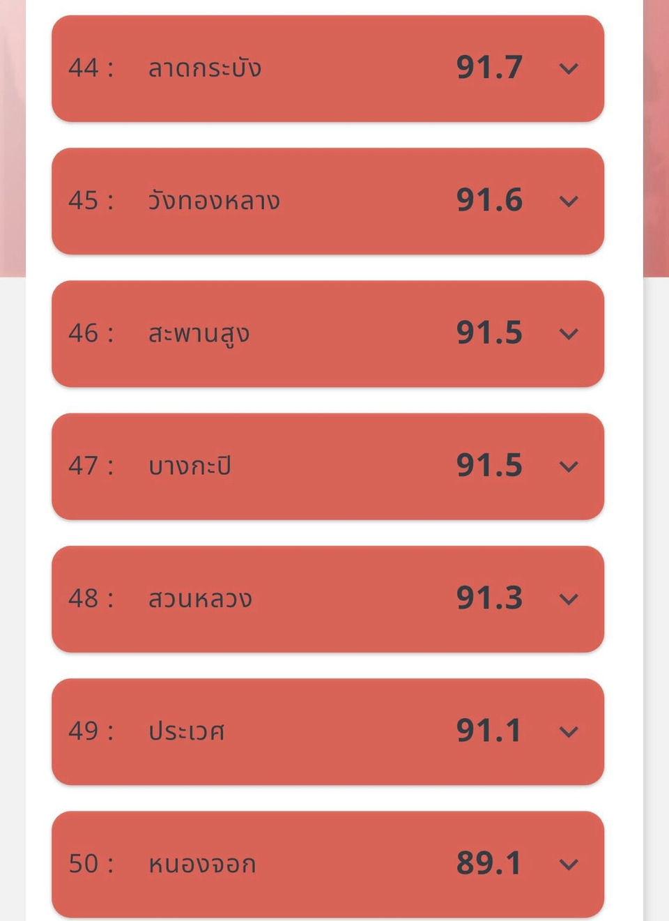 สำหรับ พื้นที่ กทม. เช้าวันนี้ พบว่าทุกเขตมีค่าฝุ่น PM2.5 เกินมาตรฐานระดับสีแดง