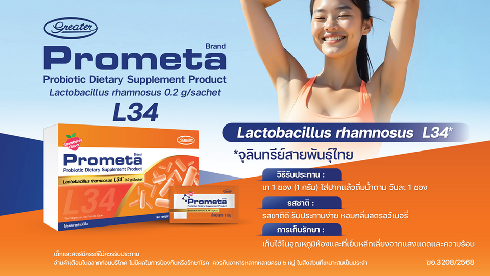 โดยล่าสุดคณะวิจัยทีมศ.ดร.สมหญิง ธัมวาสร และ รศ.ดร.อัษฎาศ์ ลีฬหวนิชกุล จากคณะแพทยศาสตร์ จุฬาลงกรณ์มหาวิทยาลัย ได้คัดแยกสายพันธุ์จากลำไส้ของคนไทย และค้นพบ โพรไบโอติกสายพันธุ์ใหม่ “GREATER Prometa L34" เพื่อสุขภาพลำไส้ของคนไทย ดังกล่าว ดังนั้นบริษัทได้ประกาศเปิดตัวผลิตภัณฑ์ใหม่ล่าสุดนี้ ด้วยความภาคภูมิใจอย่างยิ่ง เพราะเป็นสายพันธุ์ที่คิดค้นและพัฒนาขึ้นเพื่อคนไทย มีจุดแข็งที่คุณภาพของเชื้อซึ่งสอดคล้องกับวิถีชีวิตการรับประทานอาหารและสุขภาพลำไส้ของคนไทยโดยเฉพาะนั่นเอง